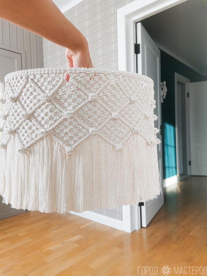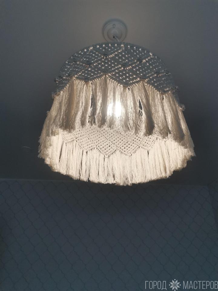 Абажур в технике макраме. Каркас металл. Под патрон е27. Диаметр 40 см, высота 29 см. Украсит интерьер спальни или детской. Подвес не продается(его можно купить на wb или AliExpress), только абажур.