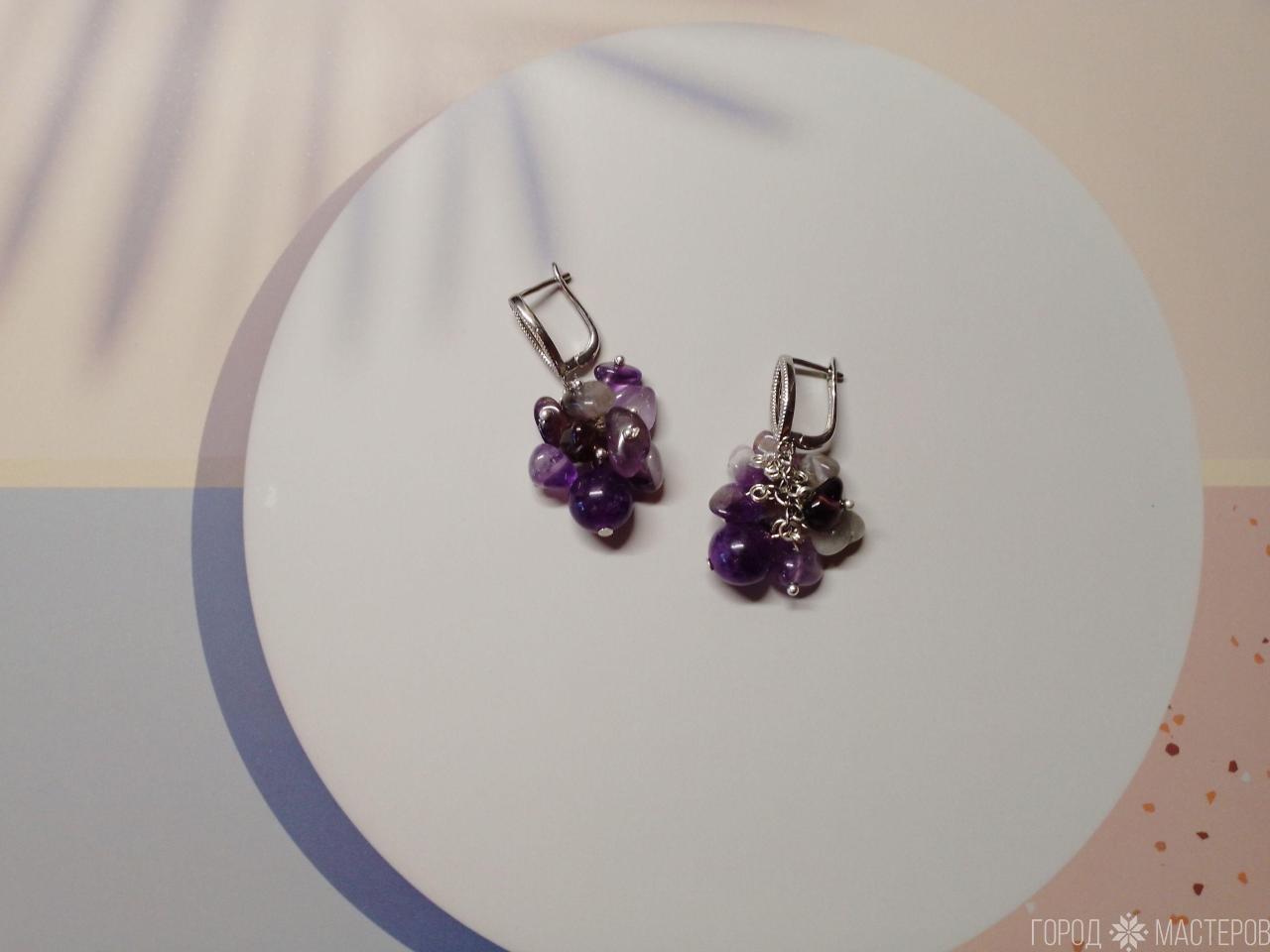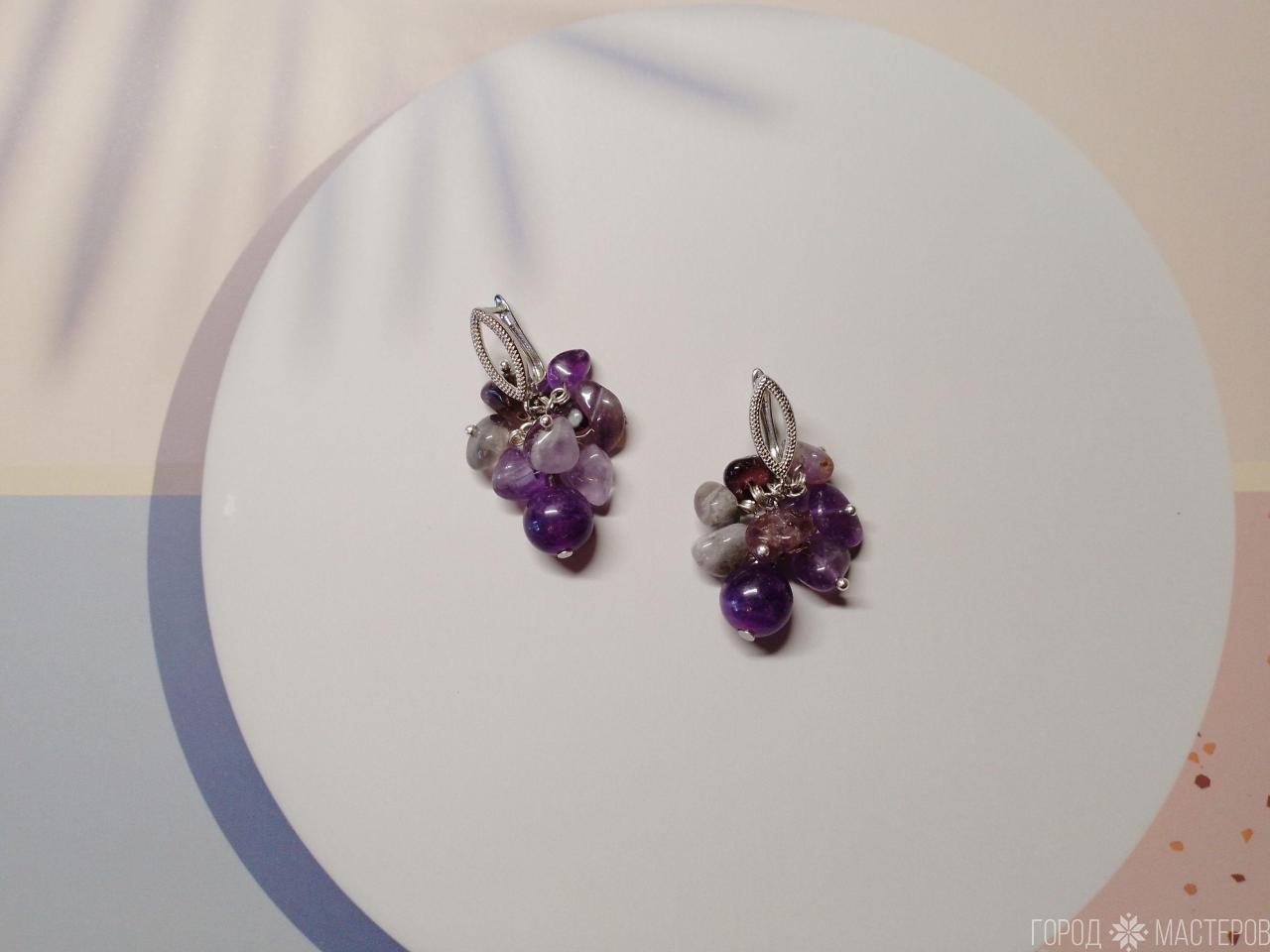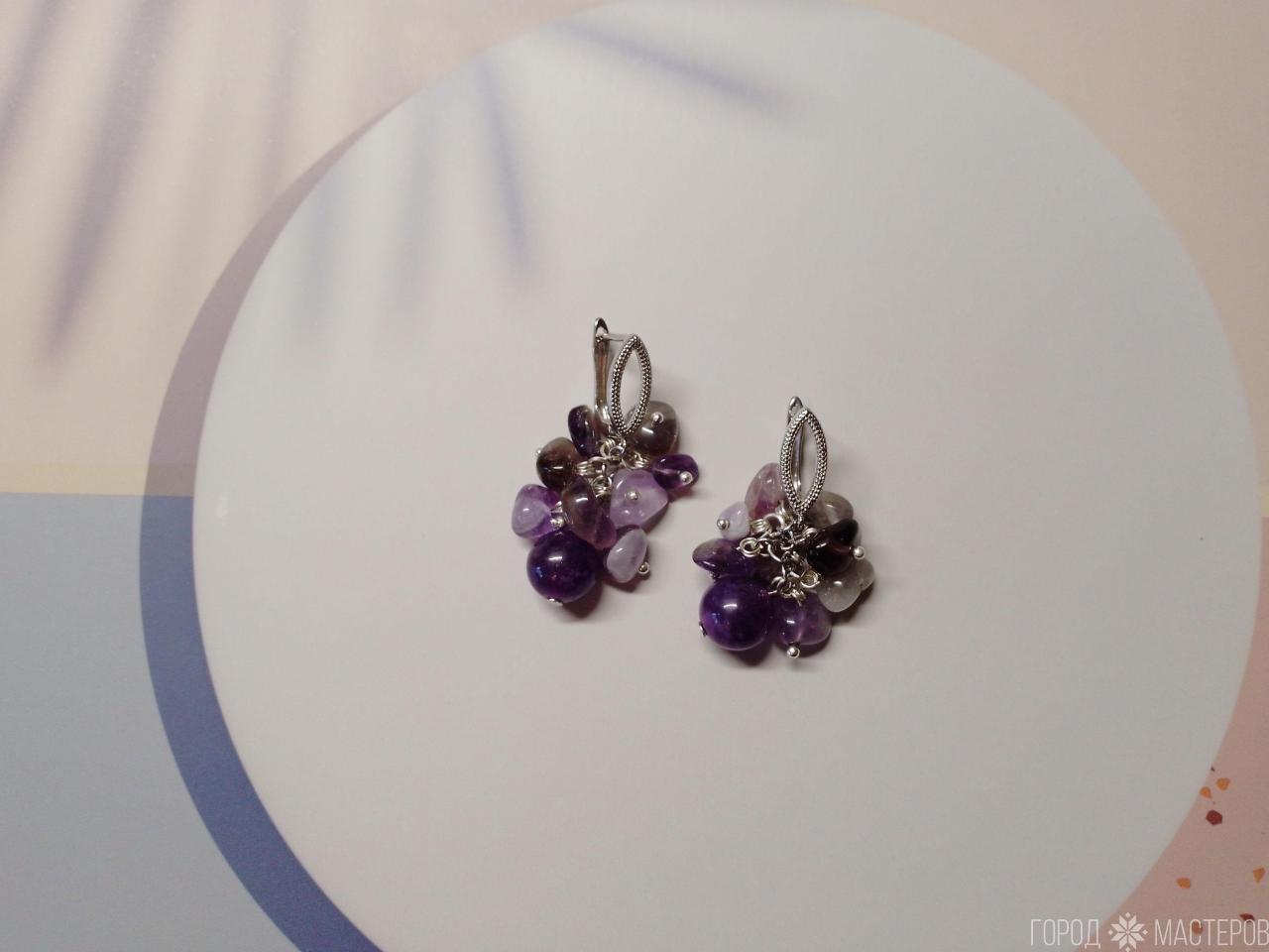 "Аметистовое очарование" серьги с натуральным аметистом ручной работы ※ Могилев