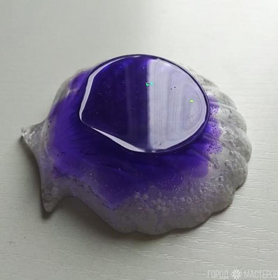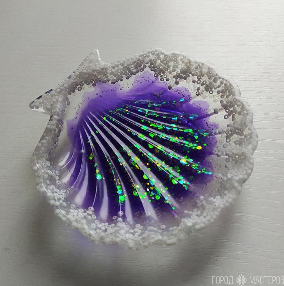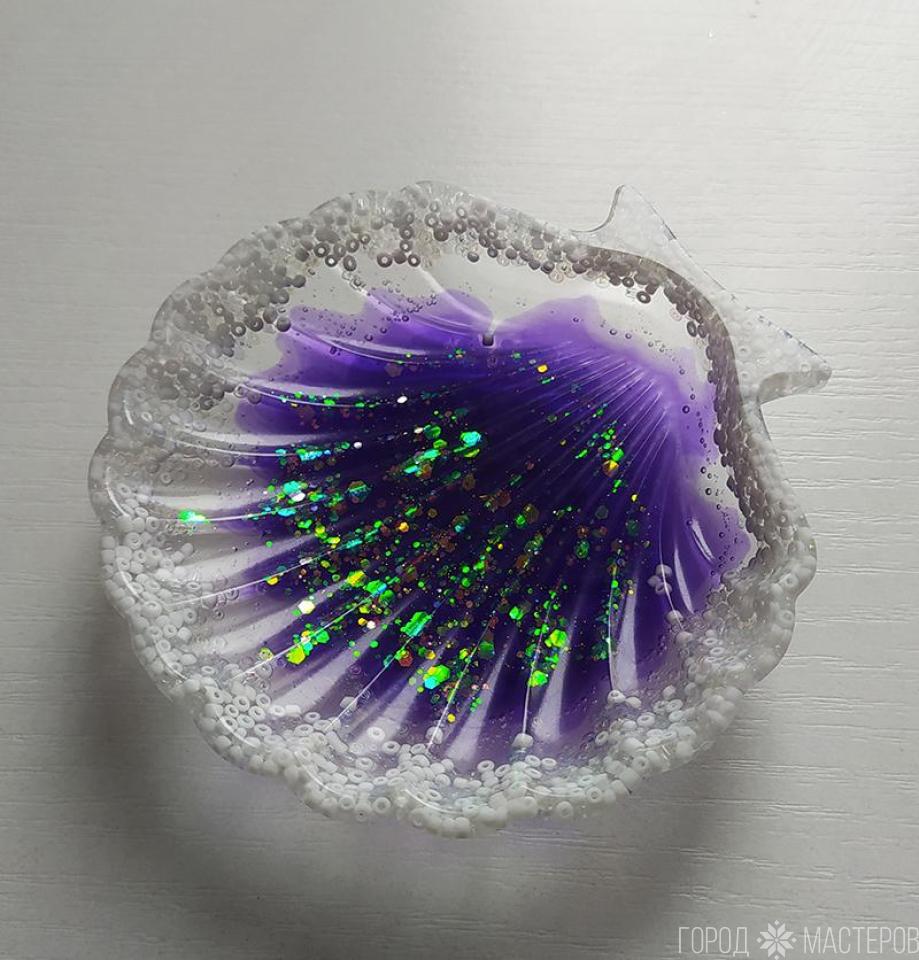 Блюдце "ракушка" из эпоксидной смолы с поталью и пигментами. Ручная работа. Размер 11 х11 см. Высота 2,5 см. Можно использовать как подставку для украшений, как мыльницу, как блюдце для холодных продуктов.