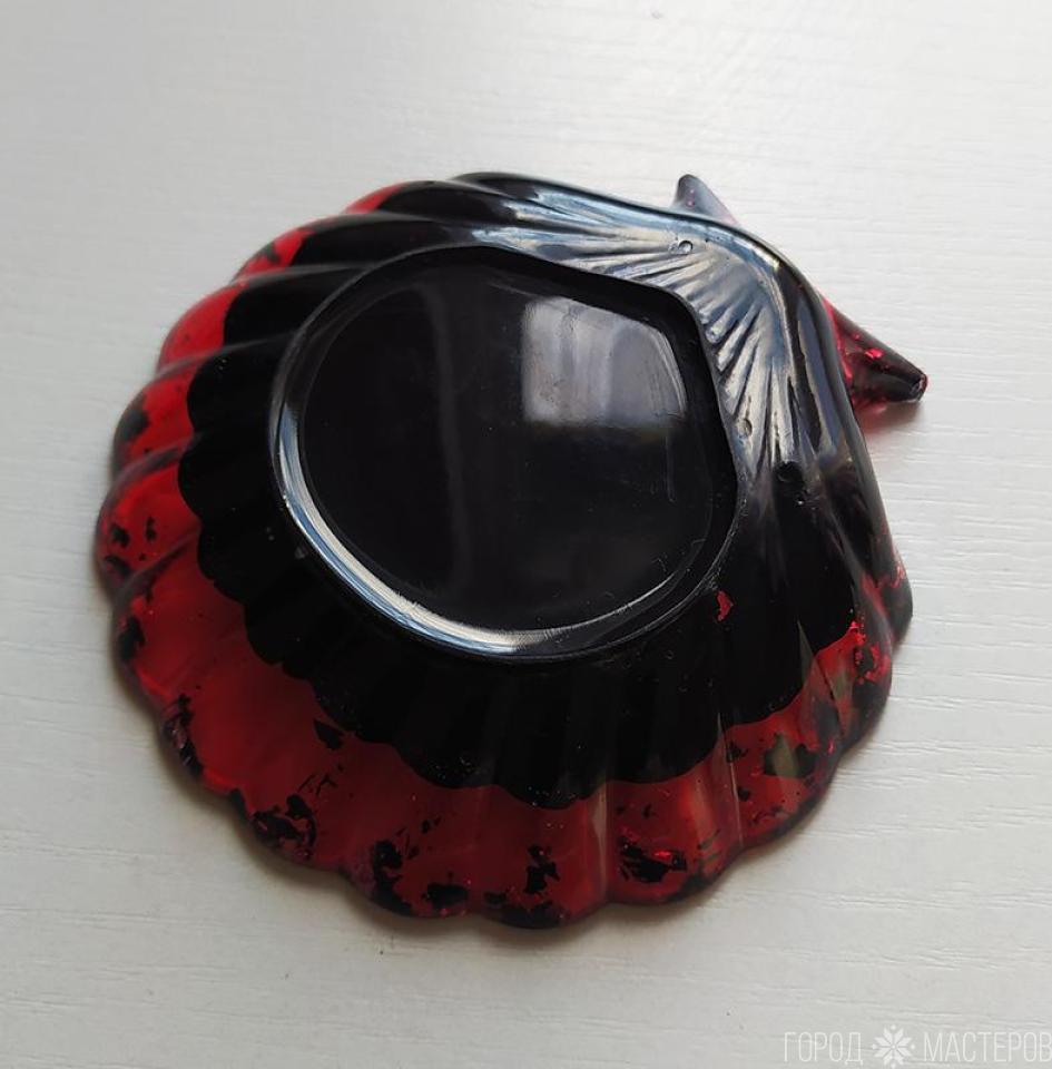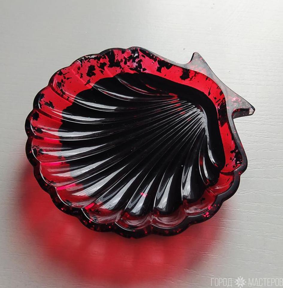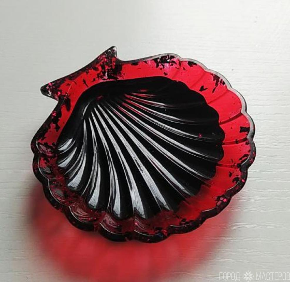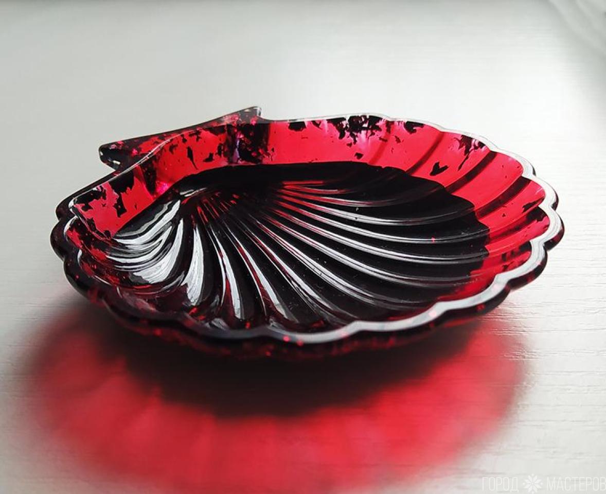 Блюдце "ракушка" из эпоксидной смолы с поталью и пигментами. Ручная работа. Размер 11 х11 см. Высота 2,5 см. Можно использовать как подставку для украшений, как мыльницу, как блюдце для холодных продуктов.
