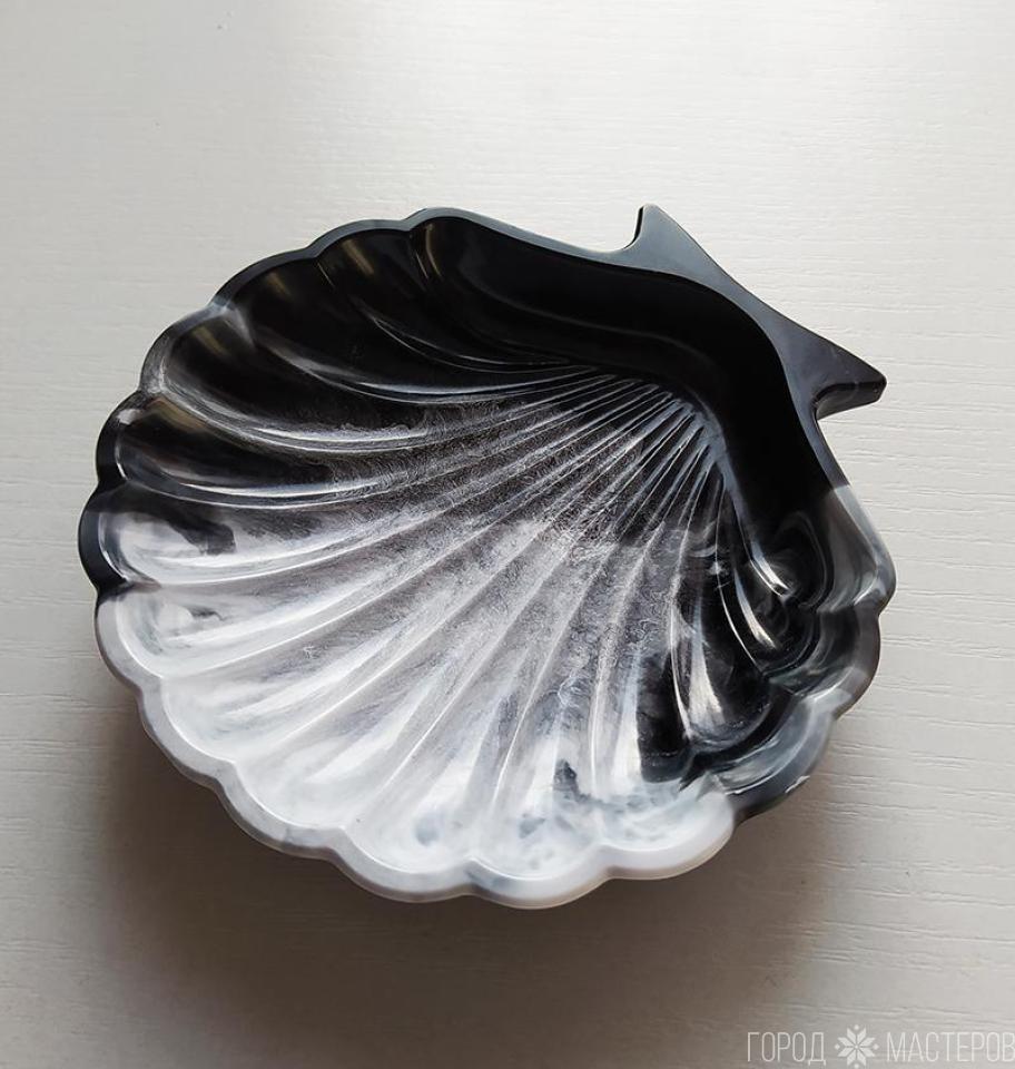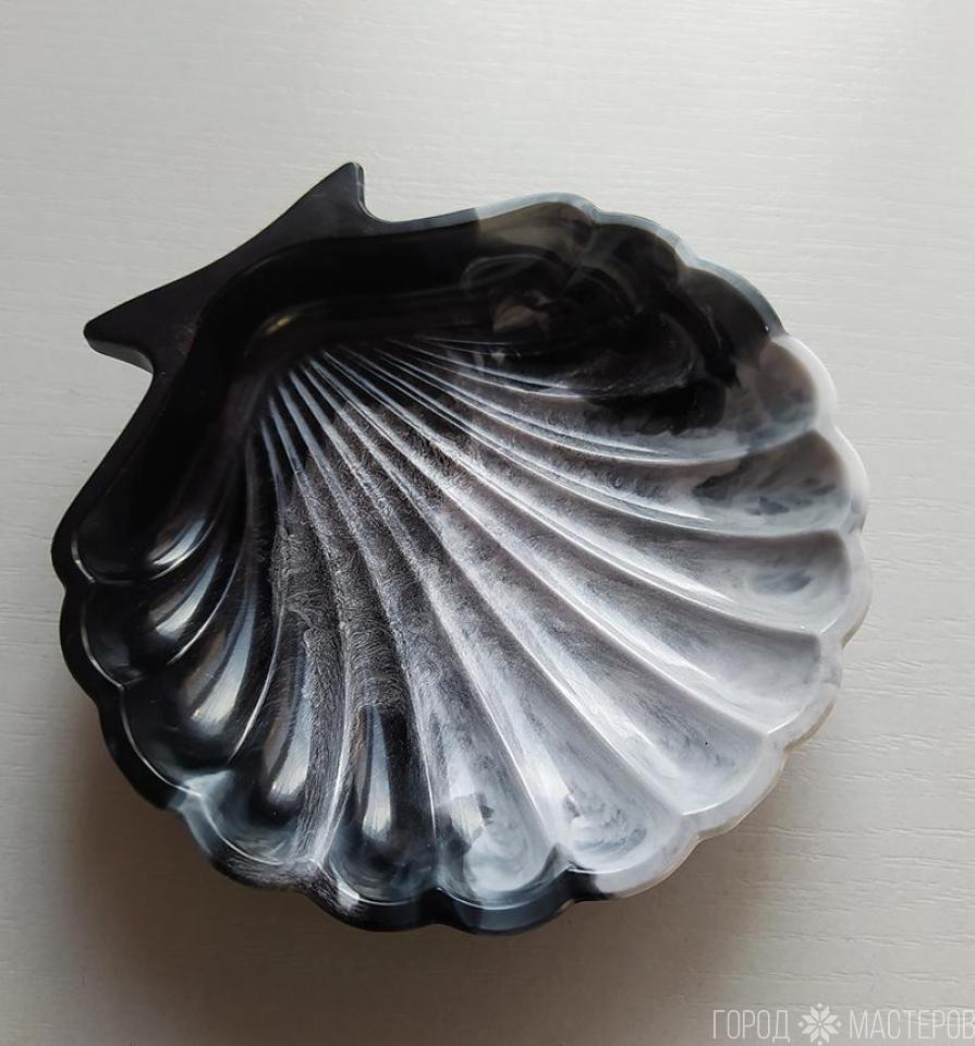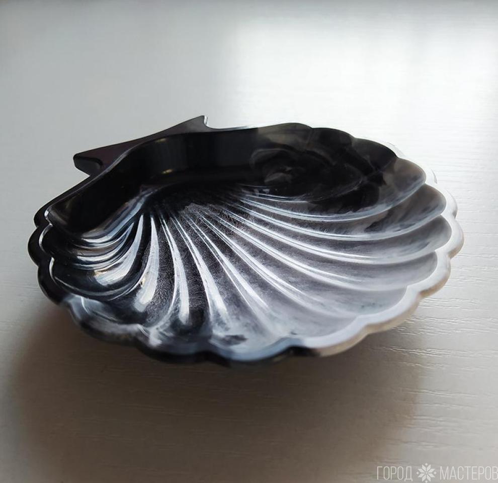 Блюдце "ракушка" из эпоксидной смолыю. Ручная работа. Размер 11 х11 см. Высота 2,5 см. Можно использовать как подставку для украшений, как мыльницу, как блюдце для холодных продуктов.
