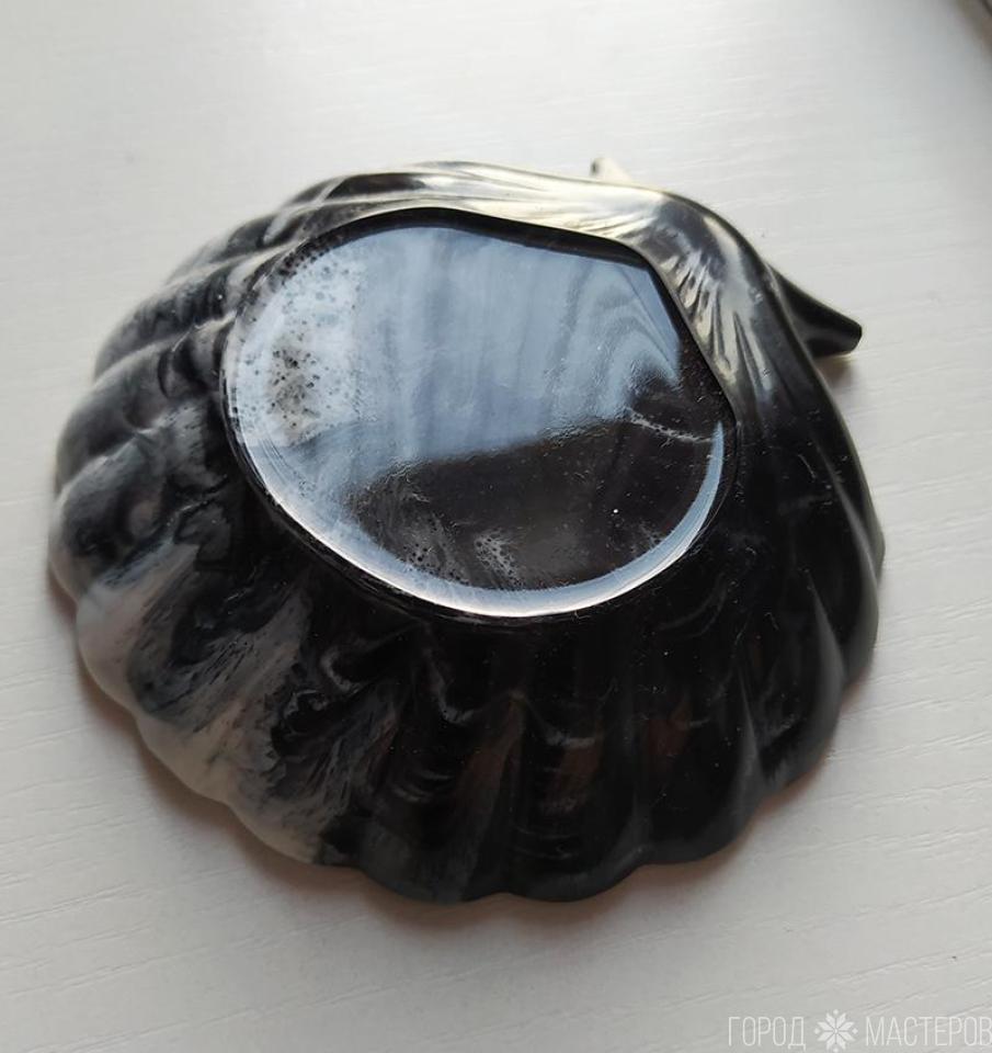 Блюдце "ракушка" из эпоксидной смолы с зернами кофе и пигментами. Ручная работа. Размер 11 х11 см. Высота 2,5 см. Можно использовать как подставку для украшений, как мыльницу, как блюдце для холодных продуктов.
