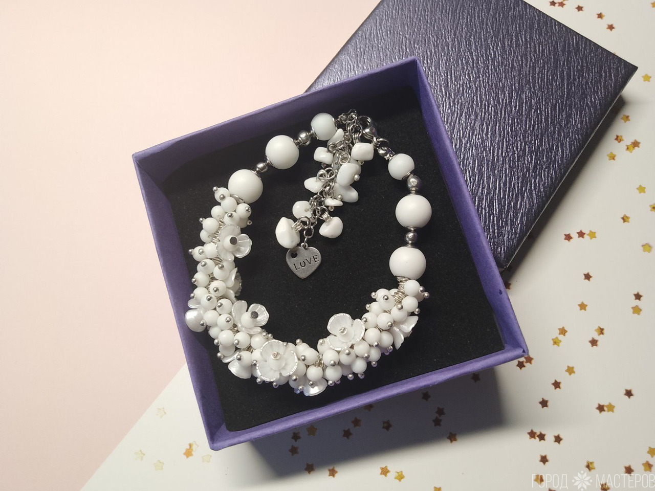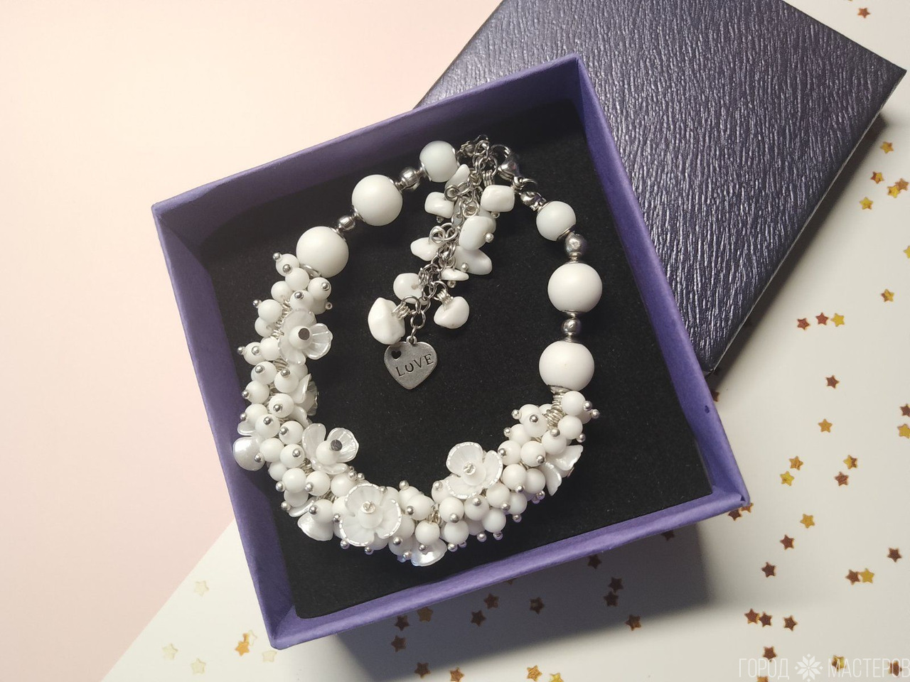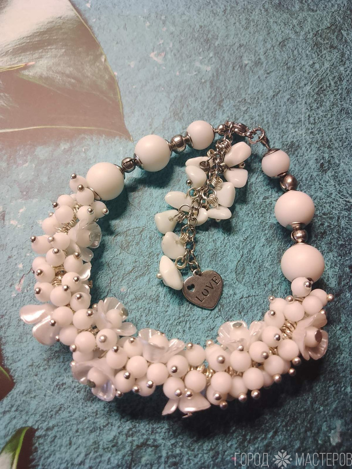 Браслетвыполнен из натурального белого агата, символизирующего чистоту и гармонию. Фурнитура из медицинского сплава обеспечивает долговечность и гипоаллергенные свойства, что делает его подходящим для чувствительной кожи. Регулируемый размер с помощью цепочки позволяет легко подстроить браслет под любое запястье. Идеальный аксессуар для завершения образа или в качестве подарка для близких.