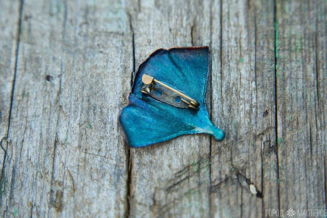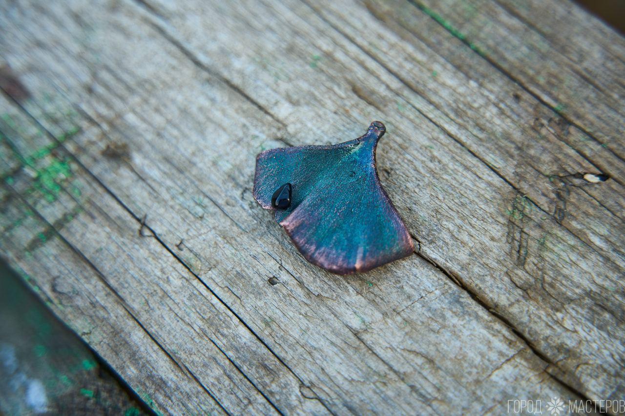 Брошь создана из настоящего листа , методом гальваники лист превращается в медное сокровище .