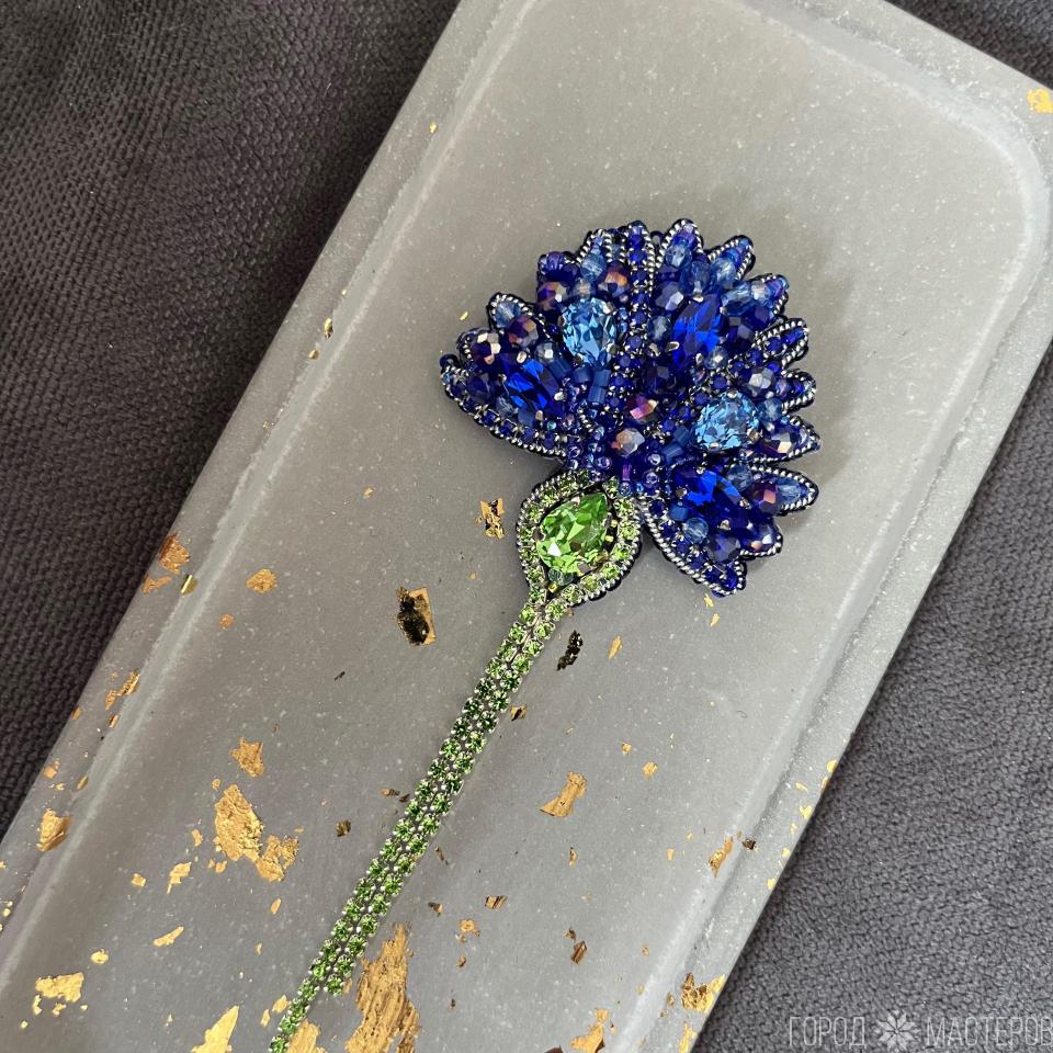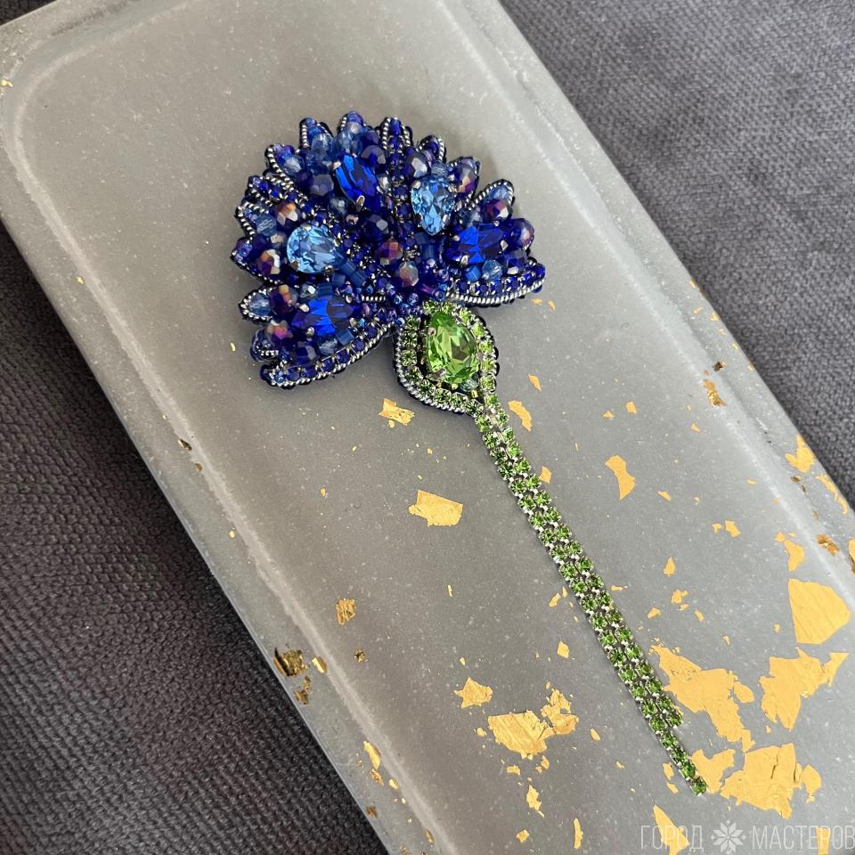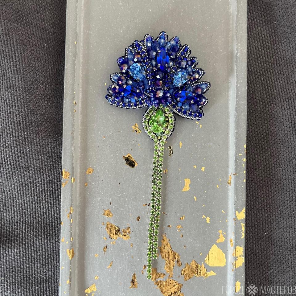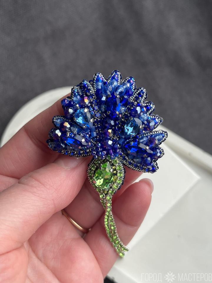 Брошь василек родной цветок. Нежный и красивый аксессуар. Брошь вышита из качественных материалов: кристаллы премиум, кристаллы Сваровски, японский и чешский бисер, граненых бусин стекло, индийской канители, стразовой цепи, натуральной кожи с изнанки. Крепится японской булавкой. В подарочной упаковке.