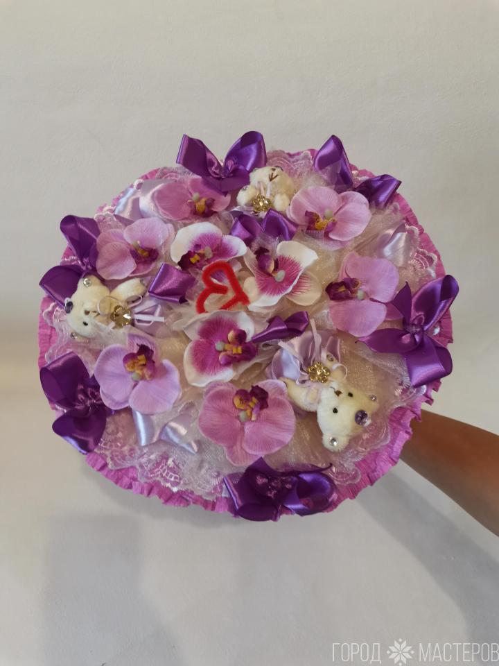 Букет ручной работы в технике свит дизайн- в середине каждого цветка легко извлекаемый подарок-сюрприз шоколадная конфета. После извлекания конфет букет будет долгое время радовать Вас своей реалистичной красотой.