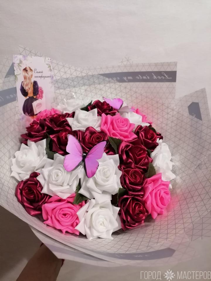 Добрый день! Делаю букеты на заказ. Цена договорная. Доставка по РБ. Фото сделано не в собранном виде. Упаковываю цветы в бумагу,ящики,коробки. За подробной информацией обращайтесь в личные сообщения.