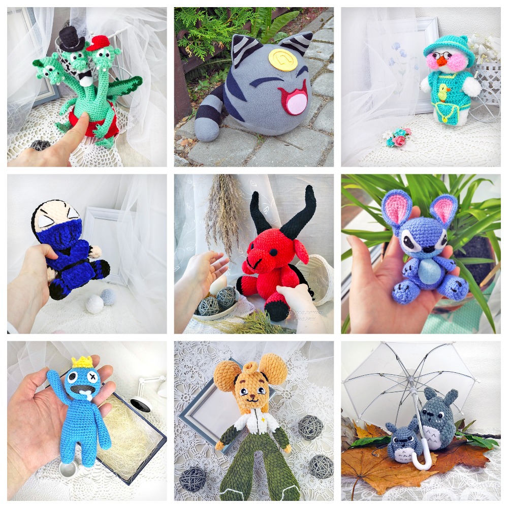 Оживляю в пряже и тканях персонажей ваших снов и фантазий ваших детей. Мультяшки, герои игр и фильмов. Зверята, куклы, монстрики, инопланетяне и другие игрушки. Cувениры от брелока на мобильный до игрушки-подушки.