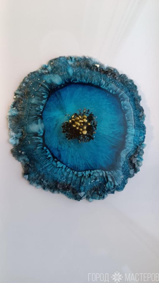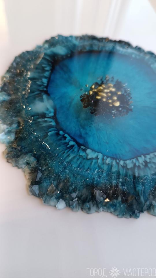 Подставка из эпоксидной смолы. Глубокие эффекты морской пучины. Уникальный подарок на день влюбленных или 8 марта. Для бокалов, украшений, парфюма и т.д. Диаметр - 14см.