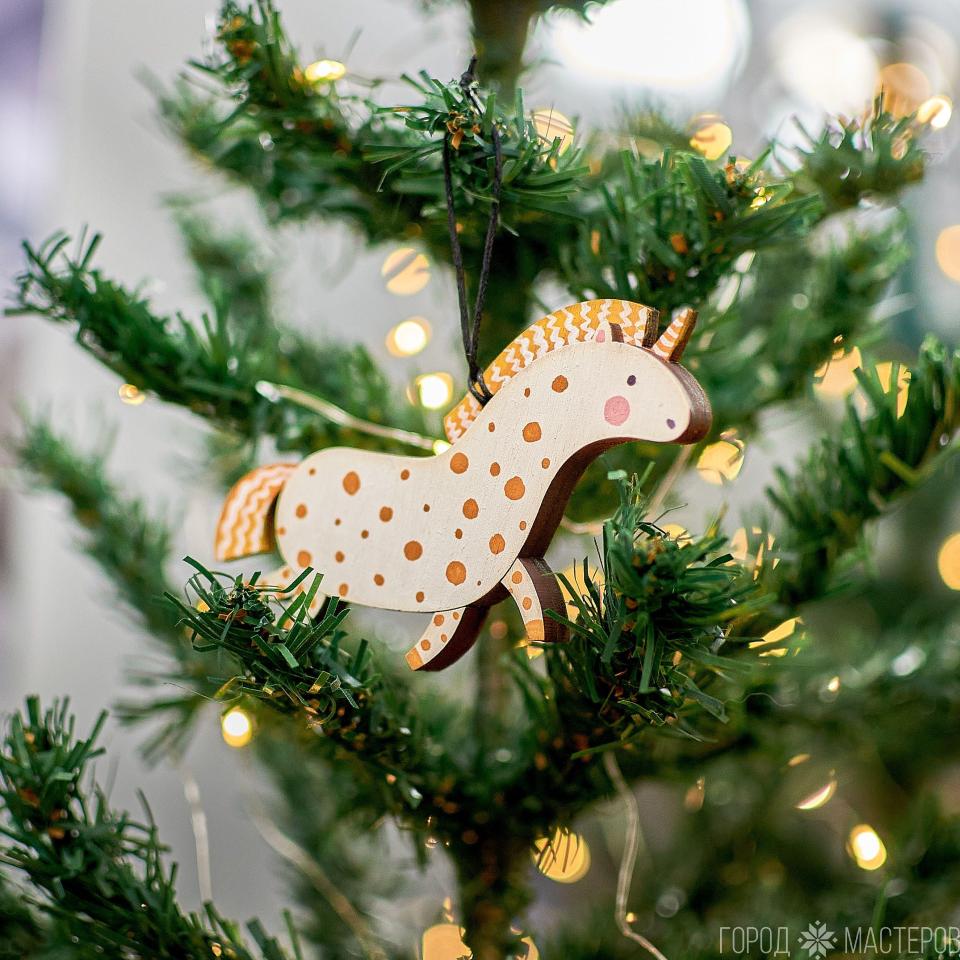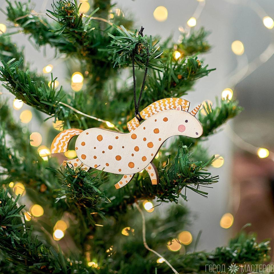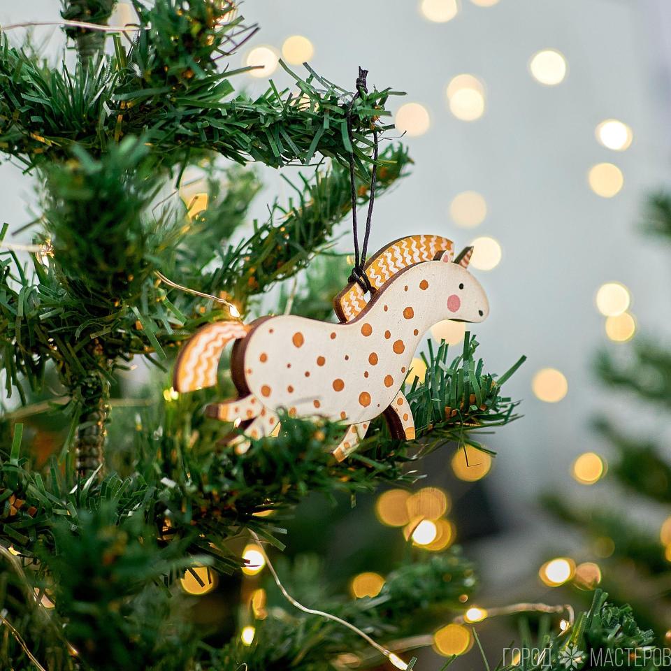 Очаровательная сказочная единорожка. Деревянная игрушка  с ручной росписью. Яркий и легкий декор для вашей новогодней елочки.