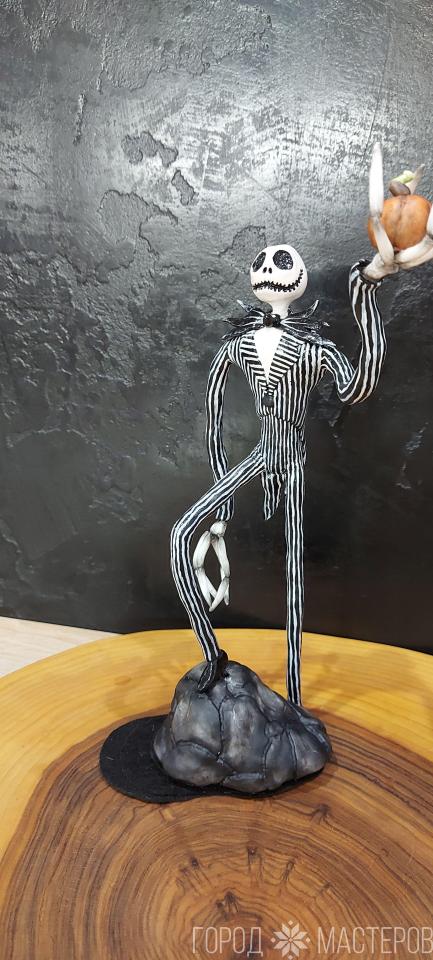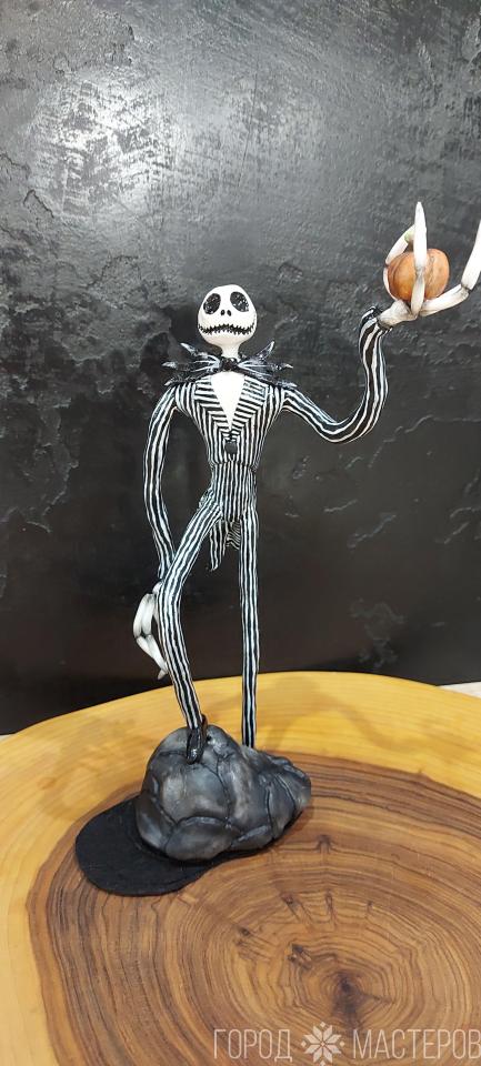 Джек скелетон выполнен из полимерной запикаемой глины,для истинных ценителей Тима Бёртона.Размер 25см.