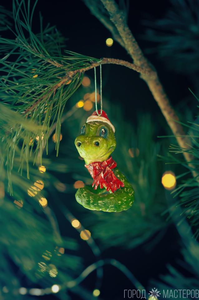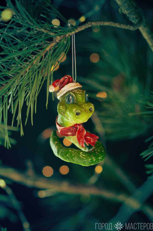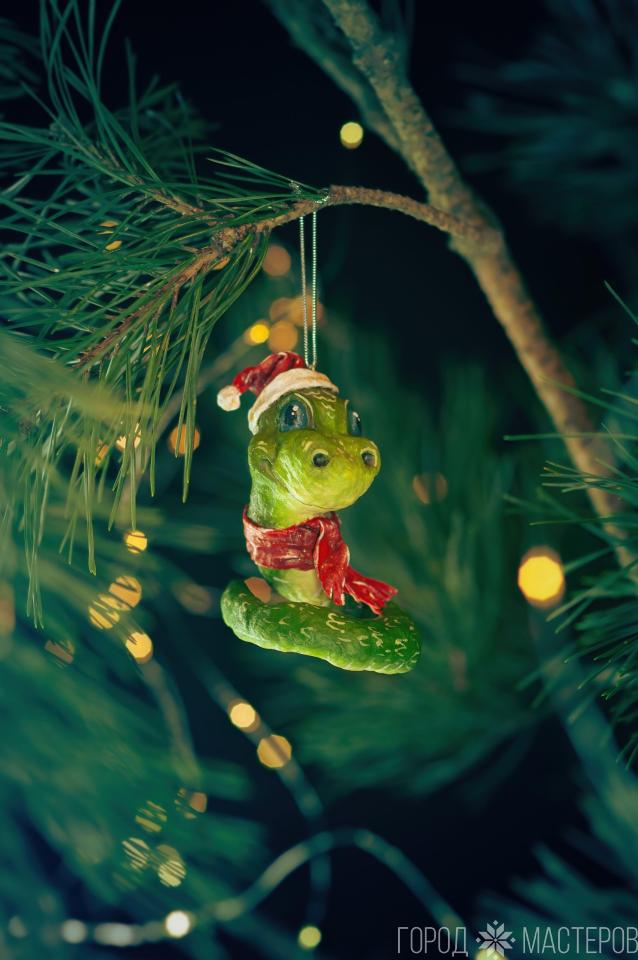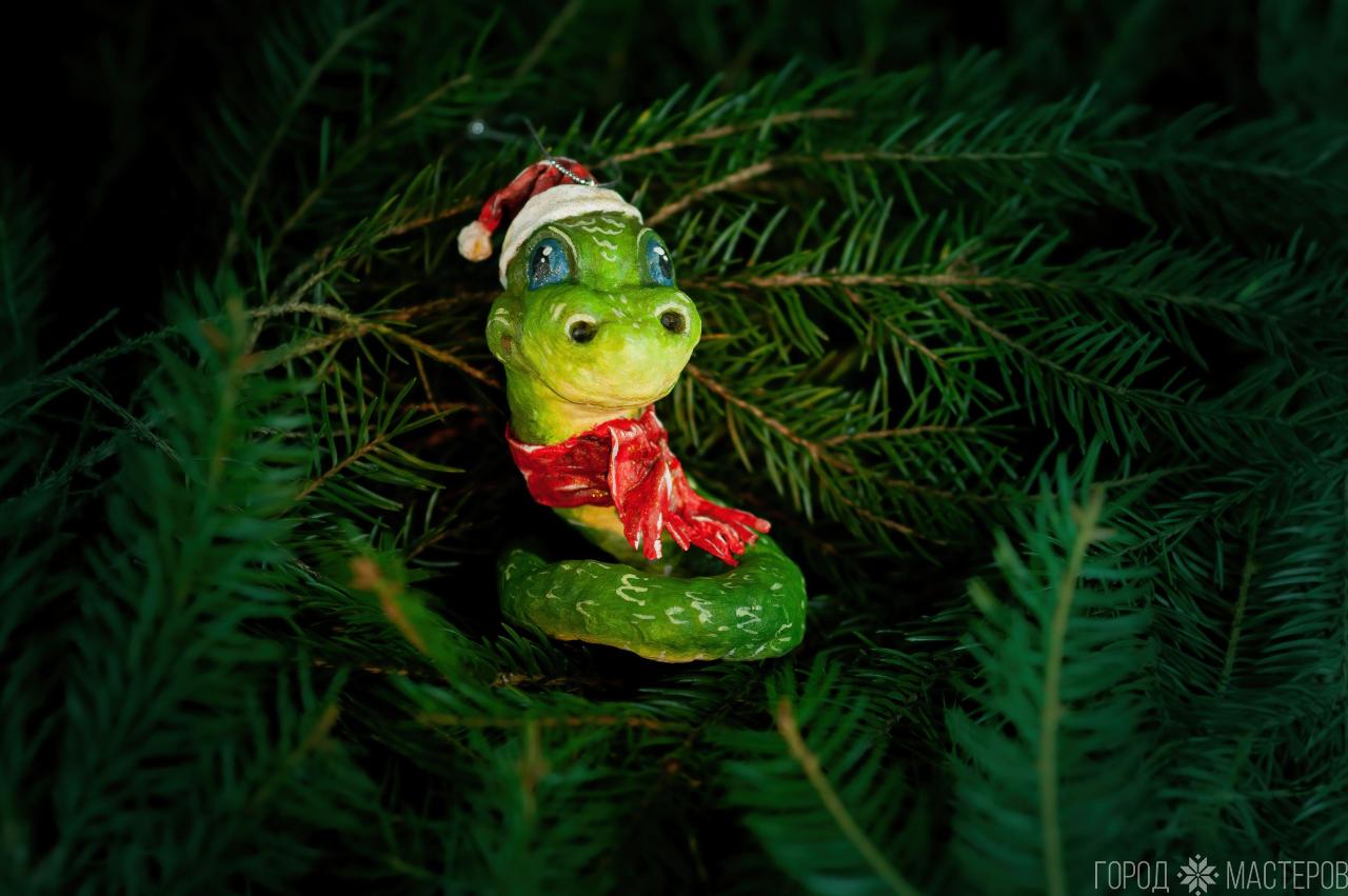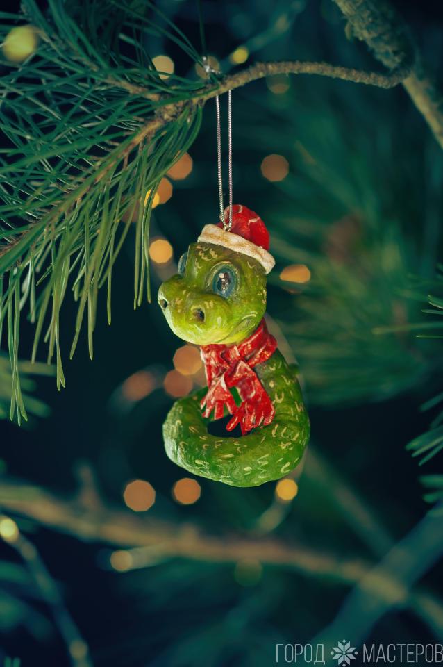 Змея - символ 2025 года. Очаровательная змейка в новоргоднем колпачке, ручной работы из ваты. Яркий и легкий декор для вашей новогодней елочки.