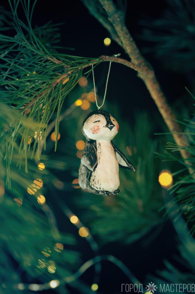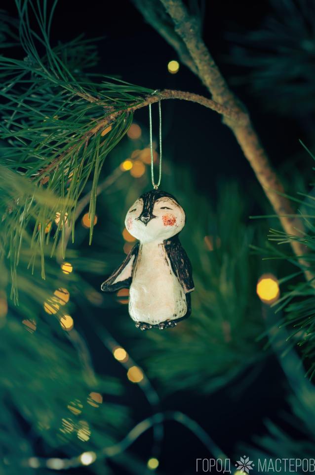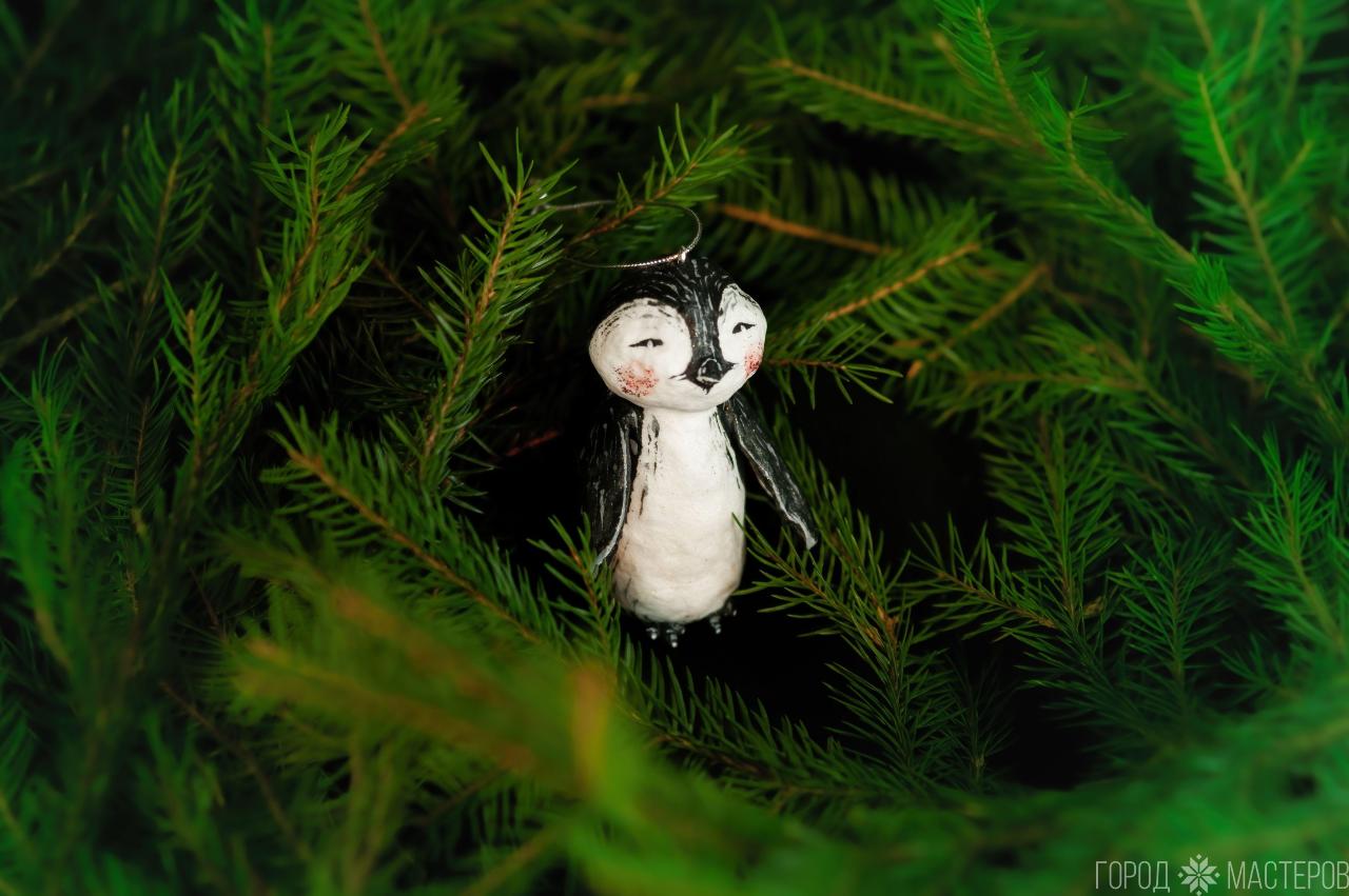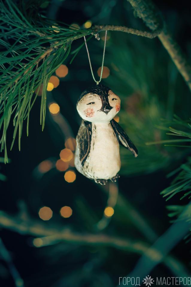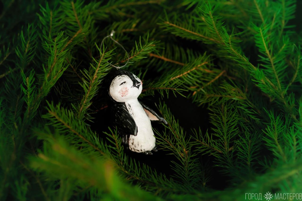 Елочная игрушка пингвин ручной работы из ваты. Яркий и легкий декор для вашей новогодней елочки.