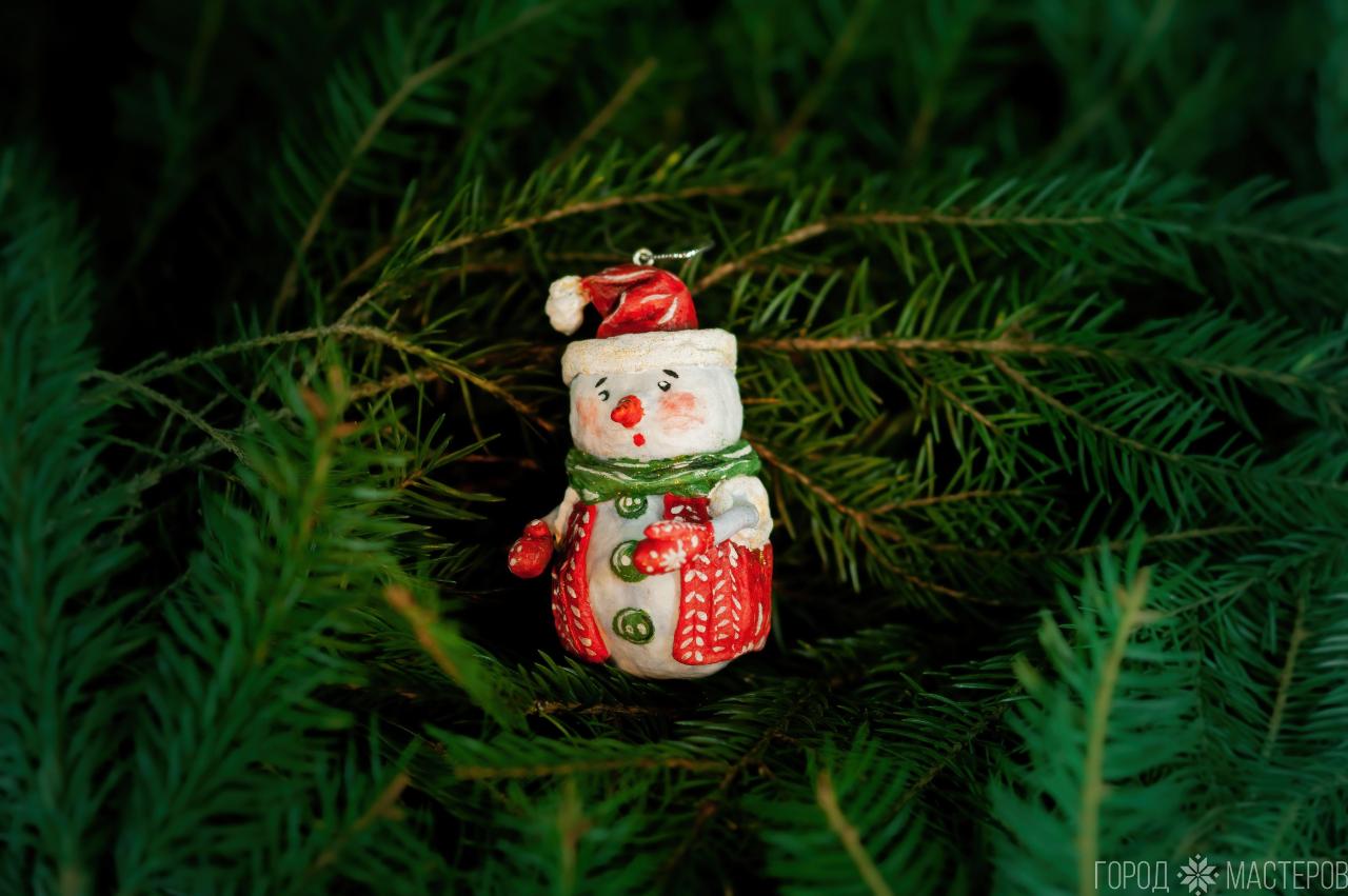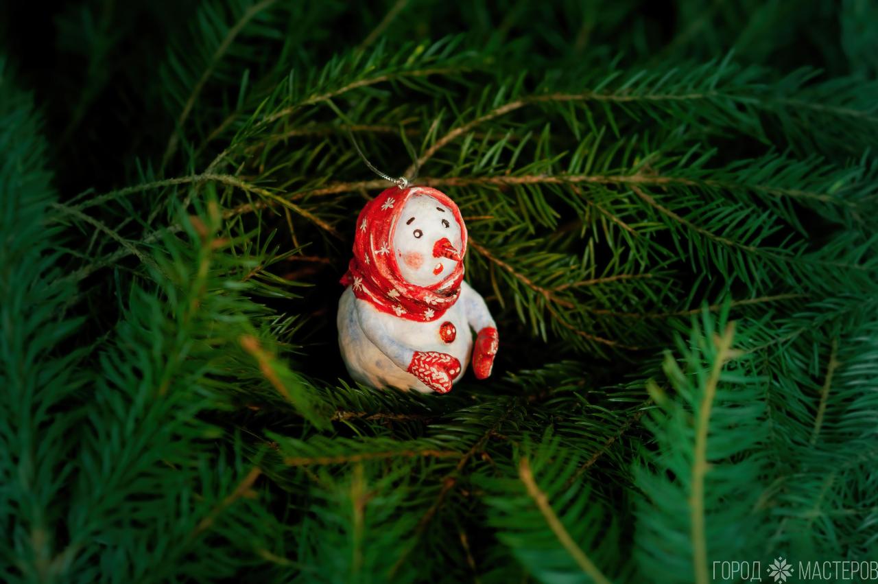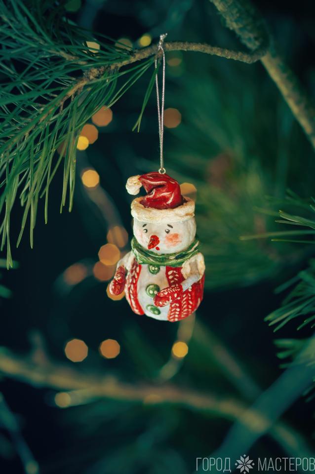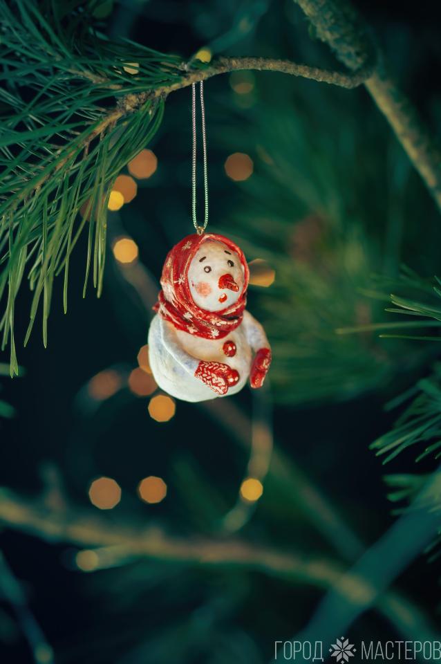 Парочка снеговичков, мальчик и девочка, ручной работы из ваты. Яркий и легкий декор для вашей новогодней елочки. Отлично подойдет для маленьких елочек.