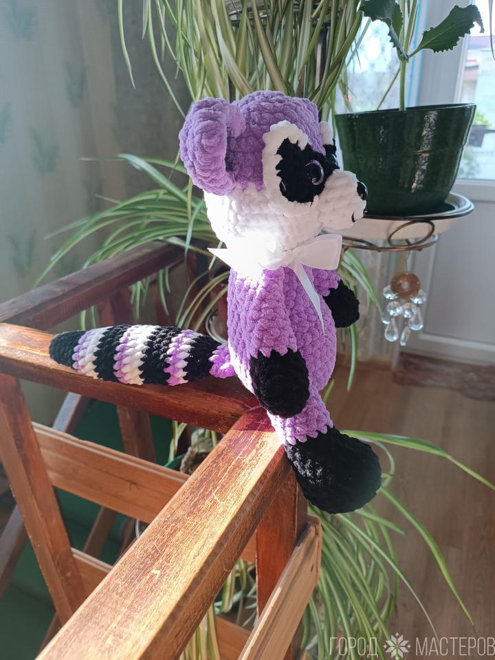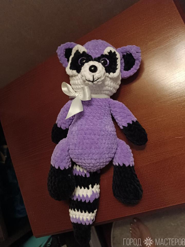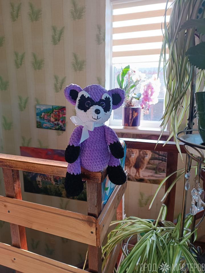 Малыш Енот из плюшевой пряжи в новогоднем костюме. Ростом примерно 24см. Сидит самостоятельно. Вся одежда снимается Белпочта, Европочта пересылка по предоплате. Самовывоз по договоренности ст.м. Малиновка