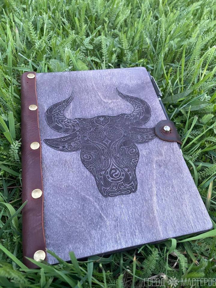 Вашему вниманию представлен ежедневник изготовленный из дерева и натуральной кожи. Лицевую сторону обложки может украшать любой рисунок или текст, да и вообще, все что вам вздумается).