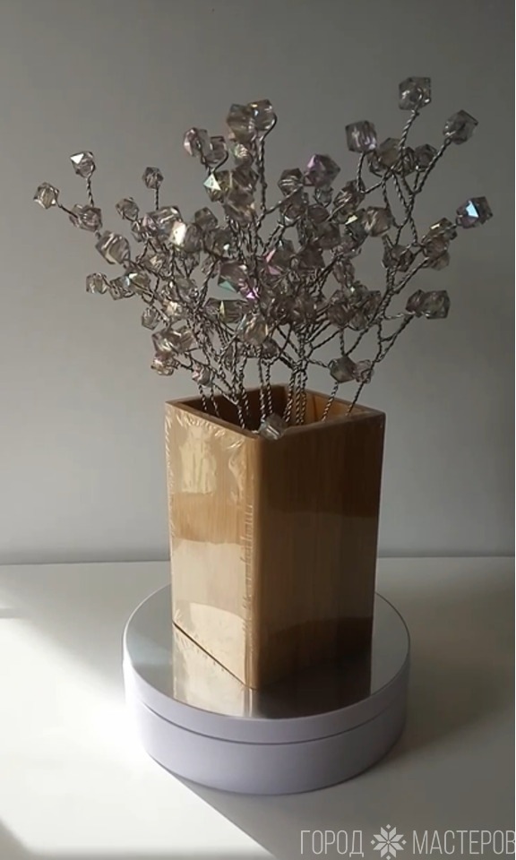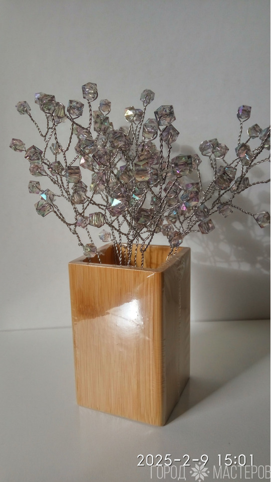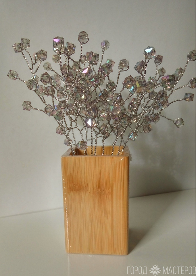Инсталляция из бусин и бамбуковой вазочки - хороший подарок как женщине так и мужчине. Хорошо впишется в интерьер квартиры или офиса.