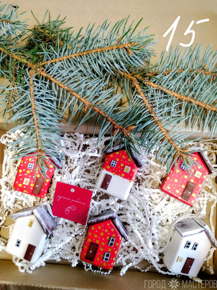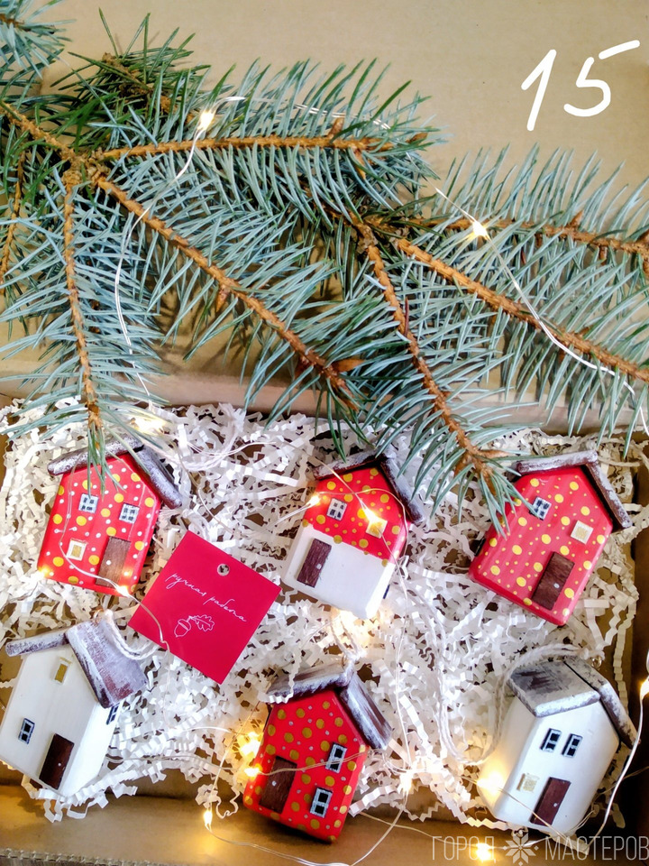 Набор интерьерных декоративных деревянных домиков ручной работы - отличный подарок Вам и Вашим близким на любой случай.  Изготовлены из дерева, покрыты акриловыми красками и лаком. Набор в подарочной упаковке (коробка, крафтовый наполнитель), гирлянда в набор не входит. Доставка Европочта, Белпочта. Стоимость указана с учётом доставки. При заказе указывайте номер на фото. Смотрите также другие мои объявления.