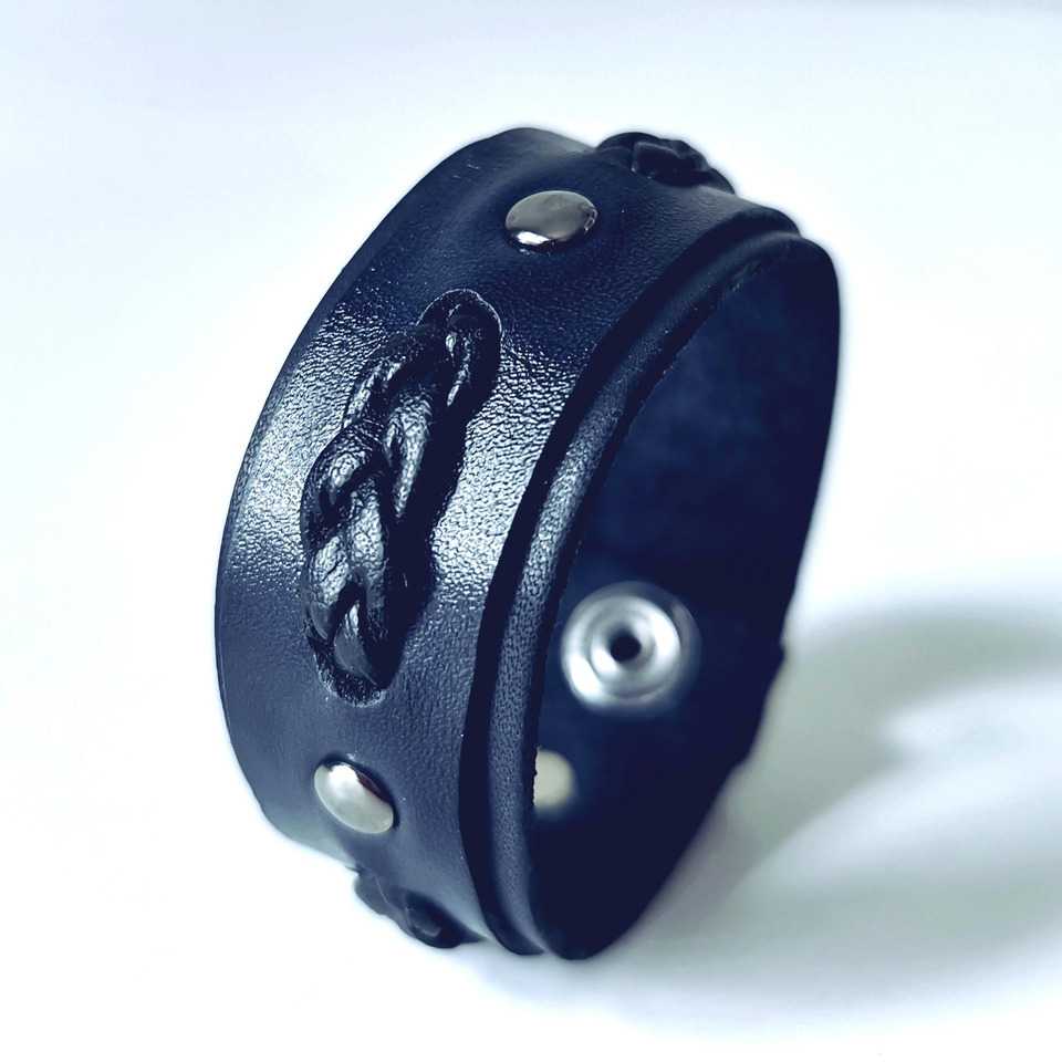 Браслет из натуральной кожи - стильный аксессуар на каждый день. Темно синий браслет шириной 2,5 см. украшен косичкой черного цвета, удобная застежка на кнопку. Как всегда, упакую в подарочную коробочку, вышлю почтой