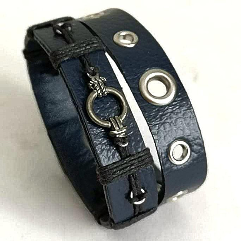 Оригинальный и стильный аксессуар на каждый день - ручной работы браслет из натуральной кожи, выполнен в единственном экземпляре. Цвет - морской синий. Удобная застёжка на кнопку. Упакован в подарочную коробочку.