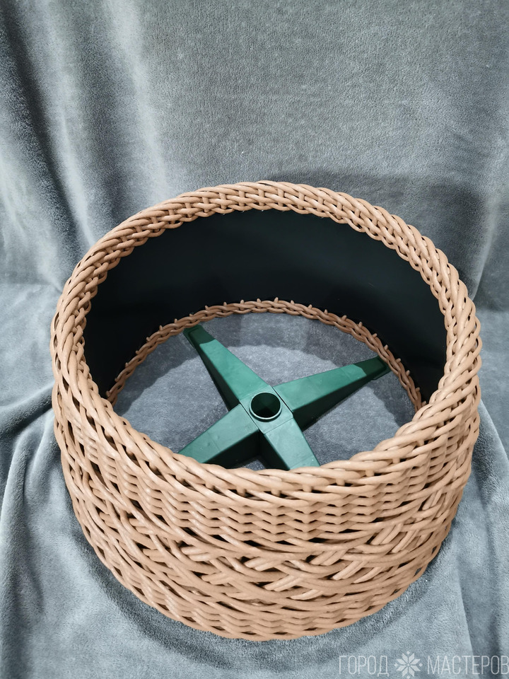 Юбка под новогоднюю елку из искусственного ротанга С-профиля 6 мм бежево-коричневого цвета. Больший диаметр под стойку 43 см. При заказе изделия цвет, узор и размер оговариваются.