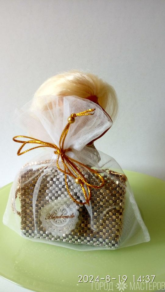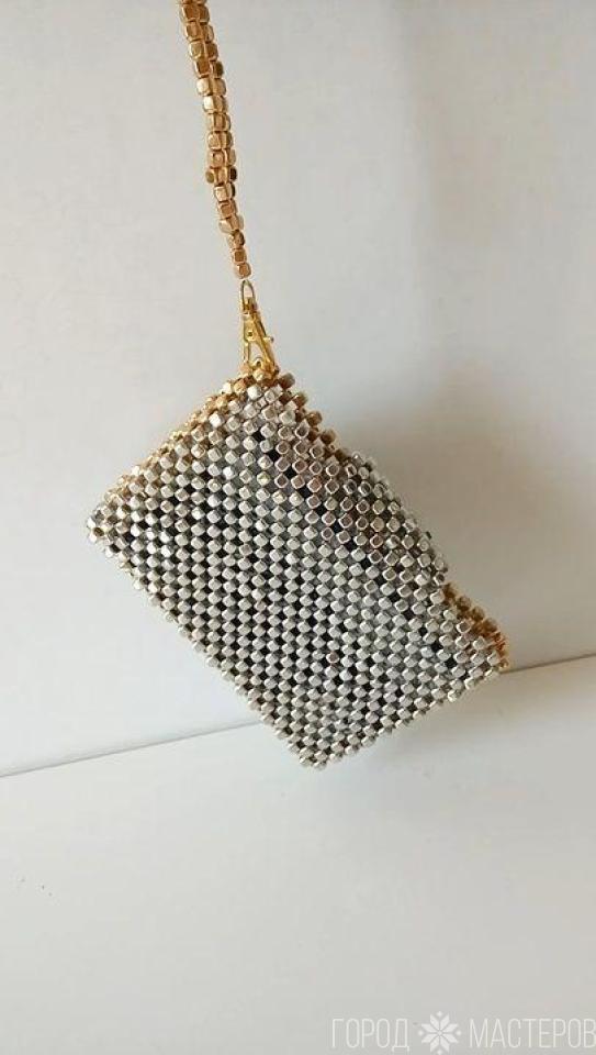 КАРТХОЛДЕР из дорогостоящих бусин - кубиков (серебро - золото)