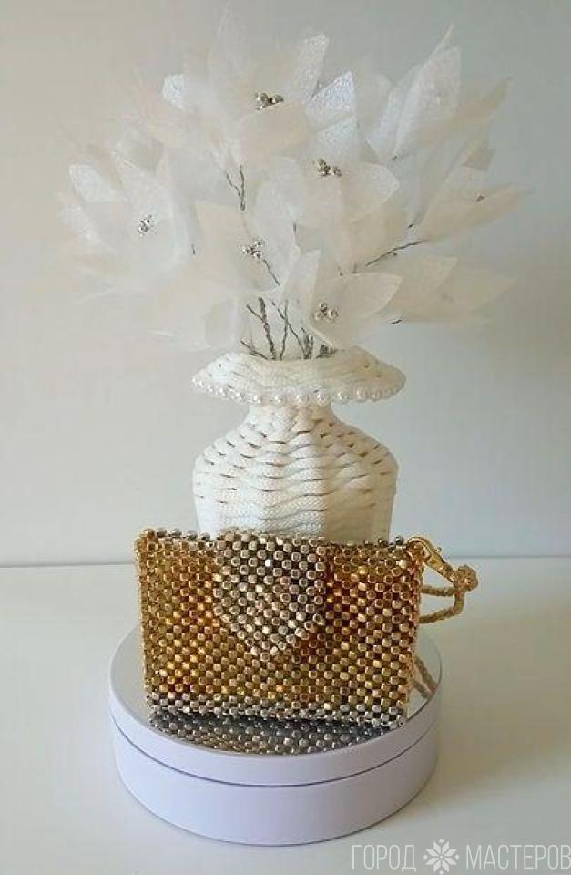 КАРТХОЛДЕР из дорогостоящих качественных бусин (серебро - золото) магнитная застёжка ручной работы ※ Слоним