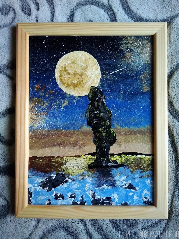 Картина акрилом Одинокая скала ручной работы ※ Витебск