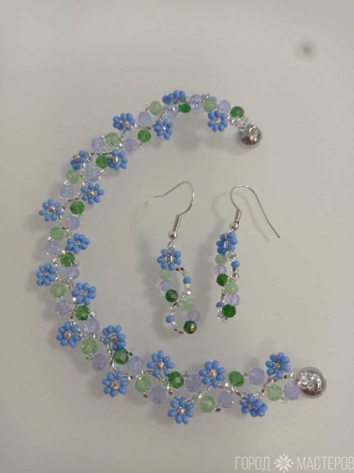 Этот изысканный комплект украшений включает браслет и серьги, выполненные в нежных сиренево-серебристо-золотистых тонах. Он сочетает в себе утонченность и современную элегантность, идеально подчёркивая женственность и стиль своей обладательницы. Мягкий сиреневый оттенок плавно переходит в мерцающий блеск, создавая завораживающую игру света и нежности.Это укр...