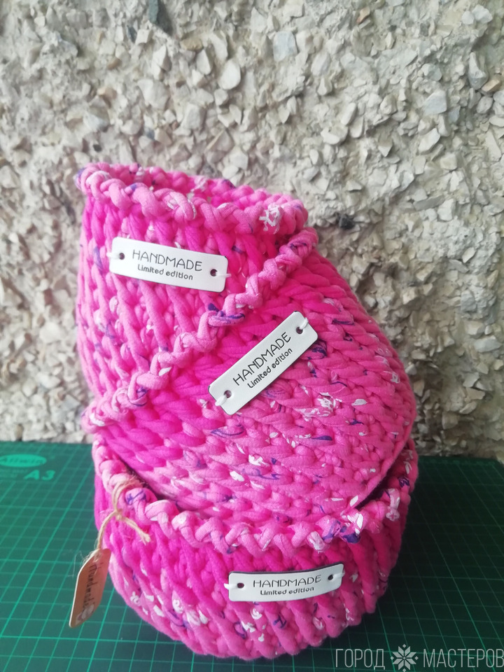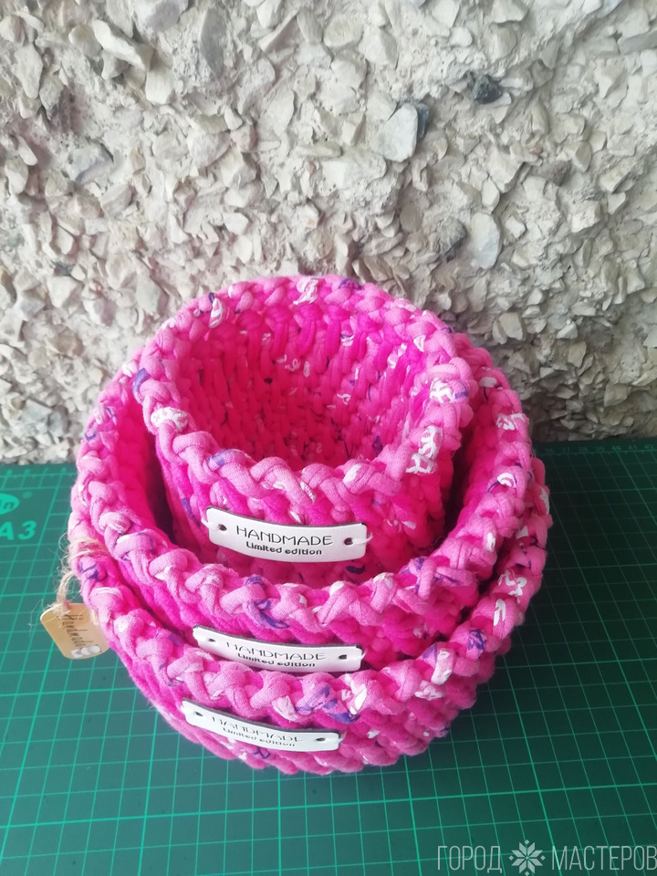 Уют и декор, комплект интерьерных корзинок, ручная работа, трикотажная пряжа, 100% хлопок