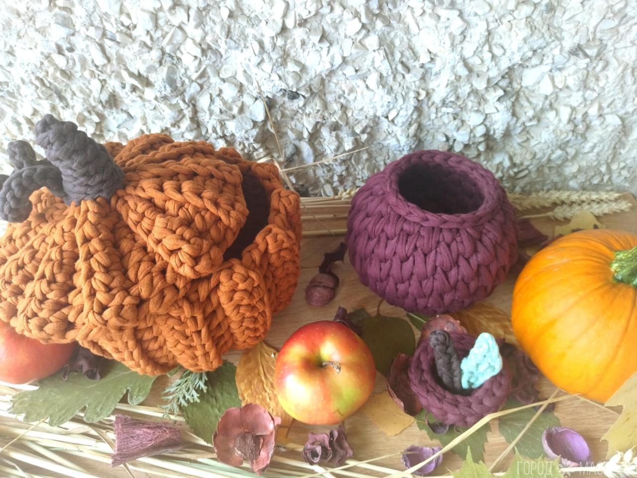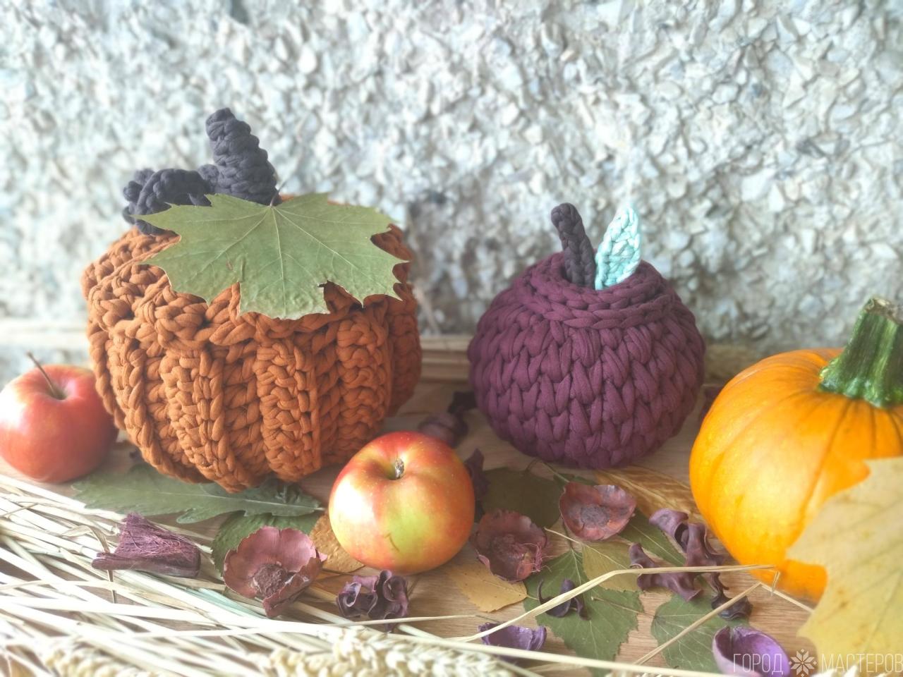 Корзинка в виде яблока или тыквы придадут интерьеру оригинальность и яркий акцент