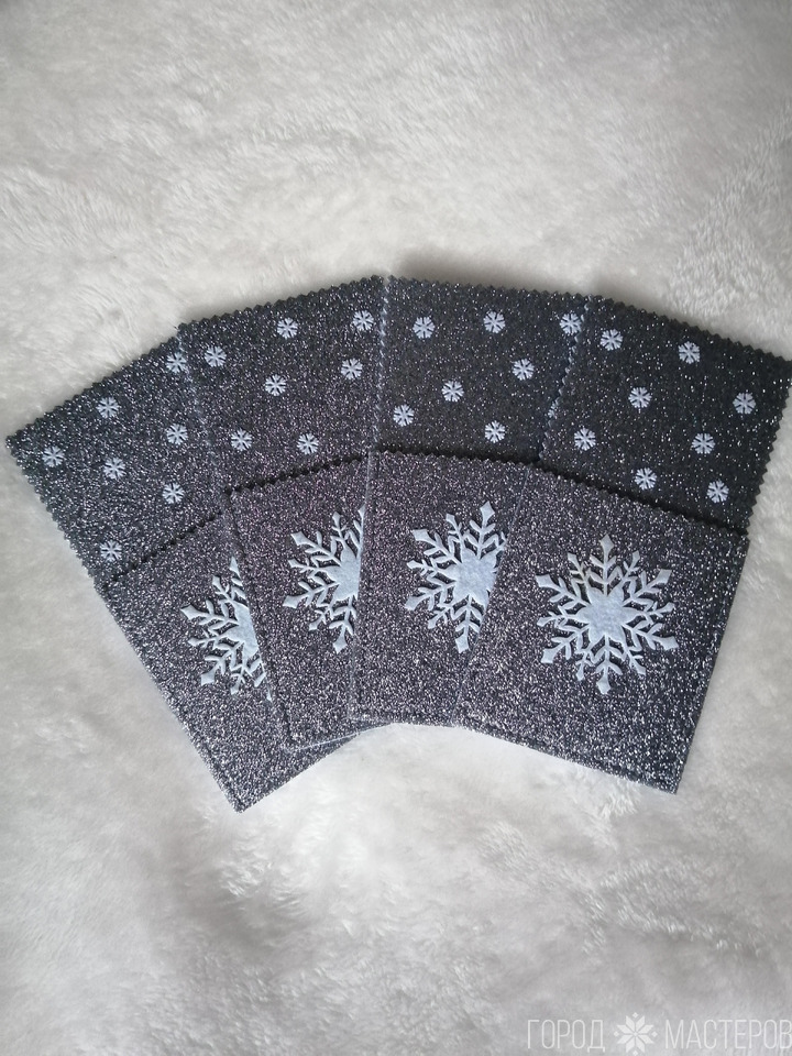 1. Конверты из фетра с глиттером (серебристые) ручной работы для Новогоднего стола, для подарка. В наличии 6 конвертов. Размер 20х10 см. ЦЕНА 10 руб. за один конверт.