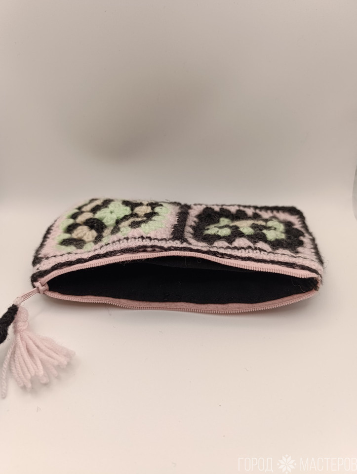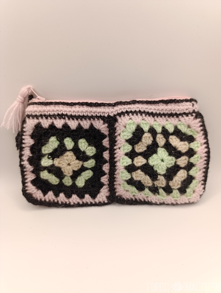 Косметичка вязаная, на подкладке, на молнии, полушерсть, акрил. Размер 18*11 см.