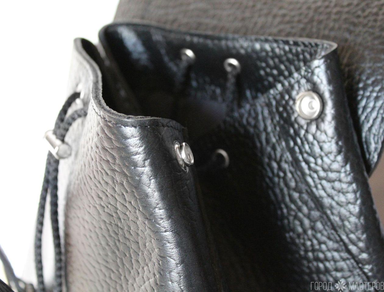 Рюкзак изготовлен из натуральной кожи с подкладкой и прошит прочными нитками.