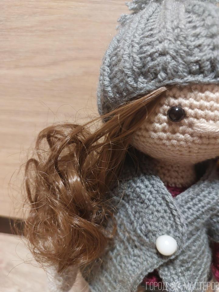 Куколка сшита из хлопка,наполнена холофайбером,в росписи лица использовались пастель и акриловые краски,поворотная голова,подвижные ручки и ножки, одежда съемная,обувь из натуральной кожи, можно менять прическу,рост 34см