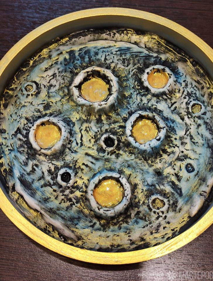 Поднос,Борд для подачи и сервировки.Прекрасен для декора ,для холодных закусок,фруктов и десертов.Ручная работа.Капли словно живые приедет к Вам в упаковке с открыткой.Вам останется лишь только подарить.Диаметр 33см