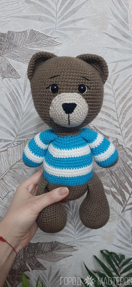 Игрушка вязаная крючком, высота 16 см, лапки подвижные, акрил, холофайбер глаза и нос на безопасном креплении.