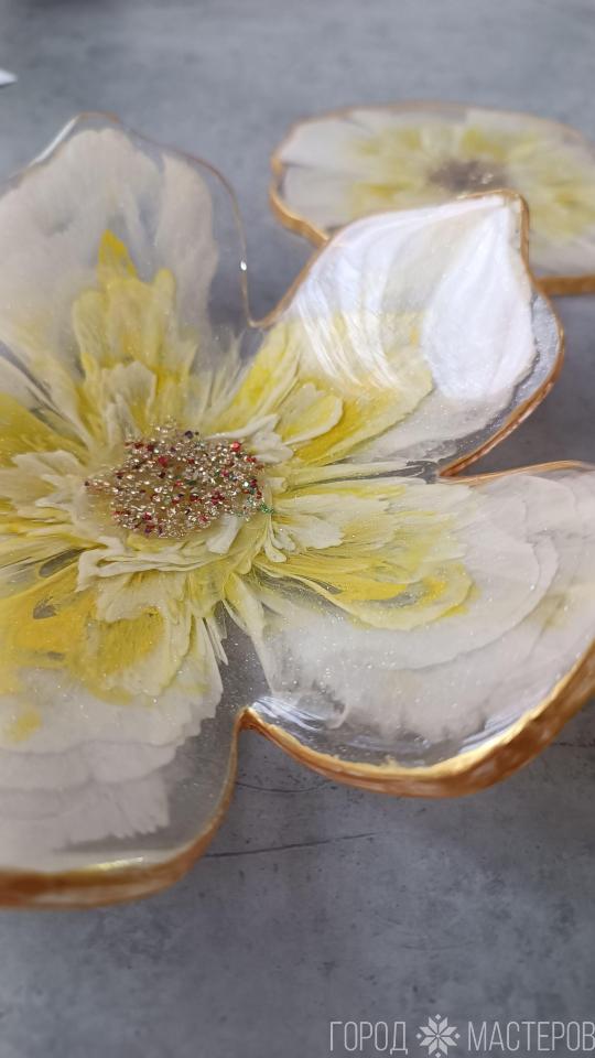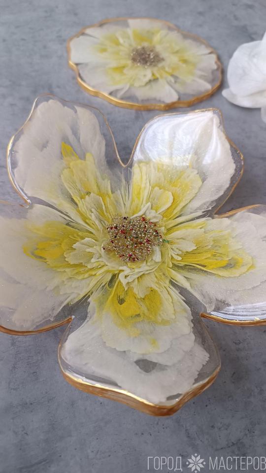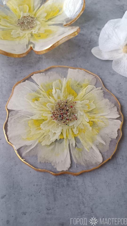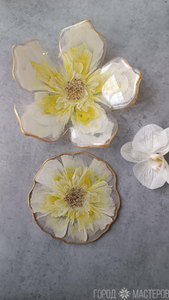 Весенний, нежный набор: пиала и подставка из эпоксидной смолы. Отличная идея для подарка. Поможет создать уютный интерьер дома.