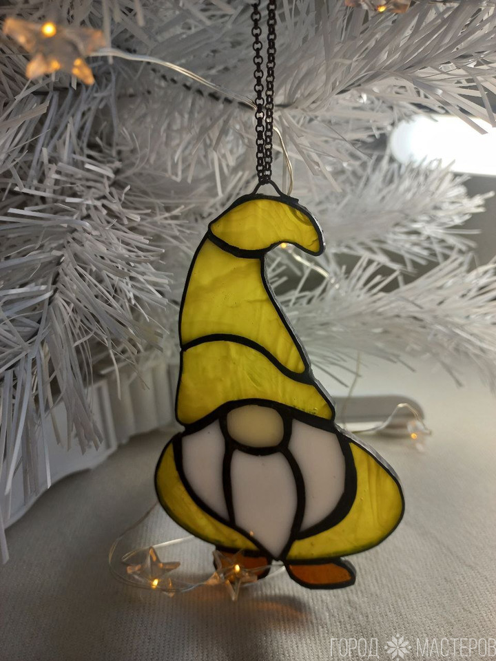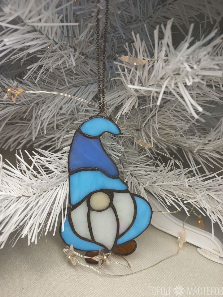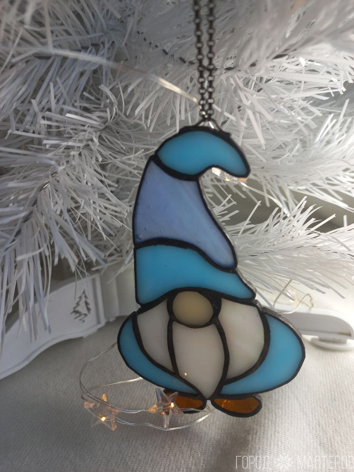 Новогодние подвески из витражного стекла выполнены в технике Тиффани - гномики🧙‍♂