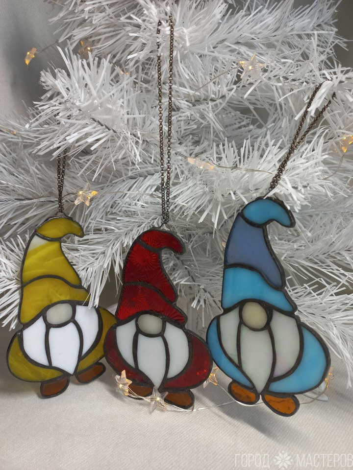 Новогодние игрушки из витражного стекла выполнены в технике Тиффани - гномики🧙‍♂ ручной работы ※ Полоцк
