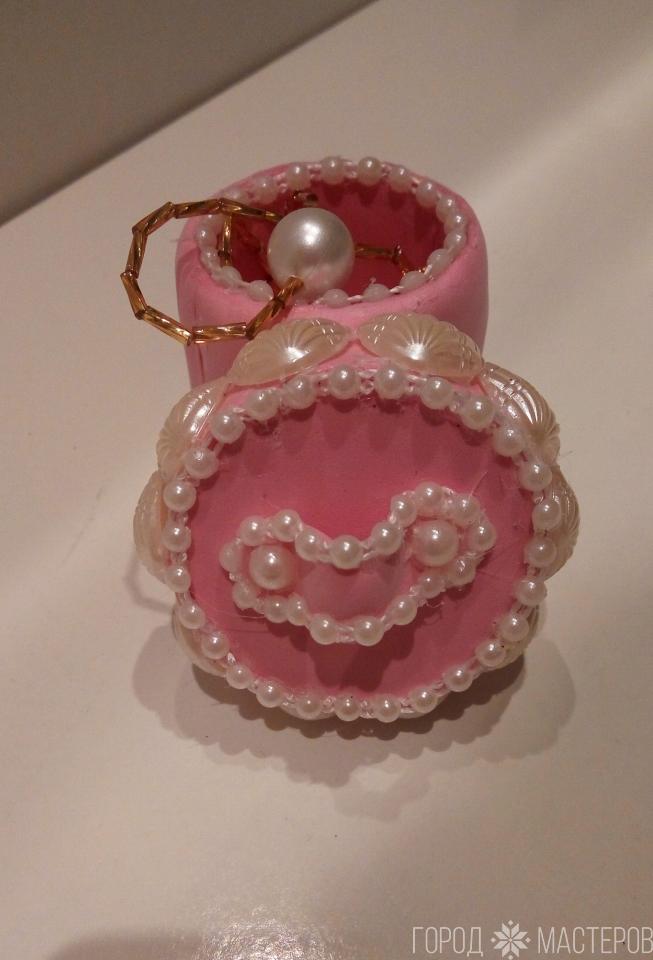 Подарок должен быть в оригинальной упаковке. Красивый цвет коробочки и инкрустация стразами под жемчуг показывает эту оригинальность и нарядность. Такая упаковка прослужит долгое время и будет напоминанием счастливого момента.