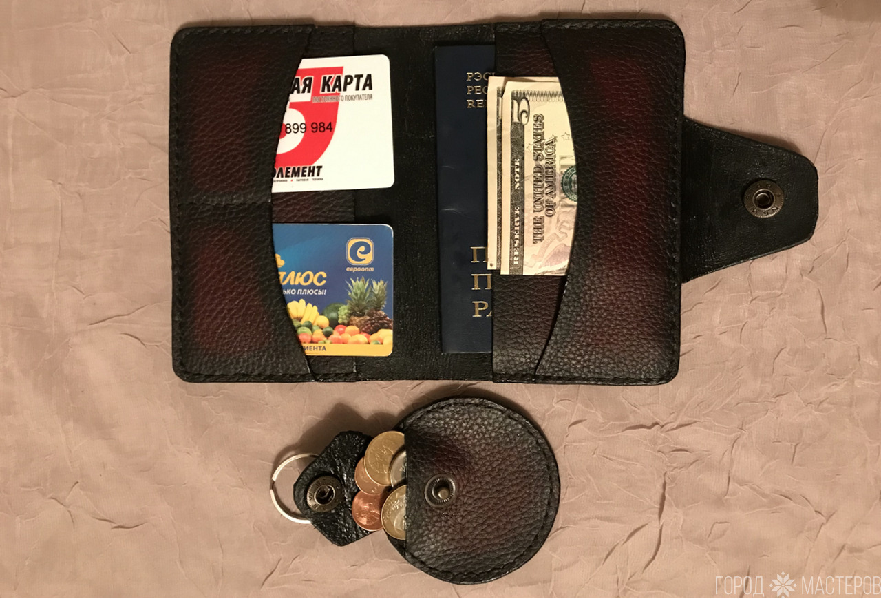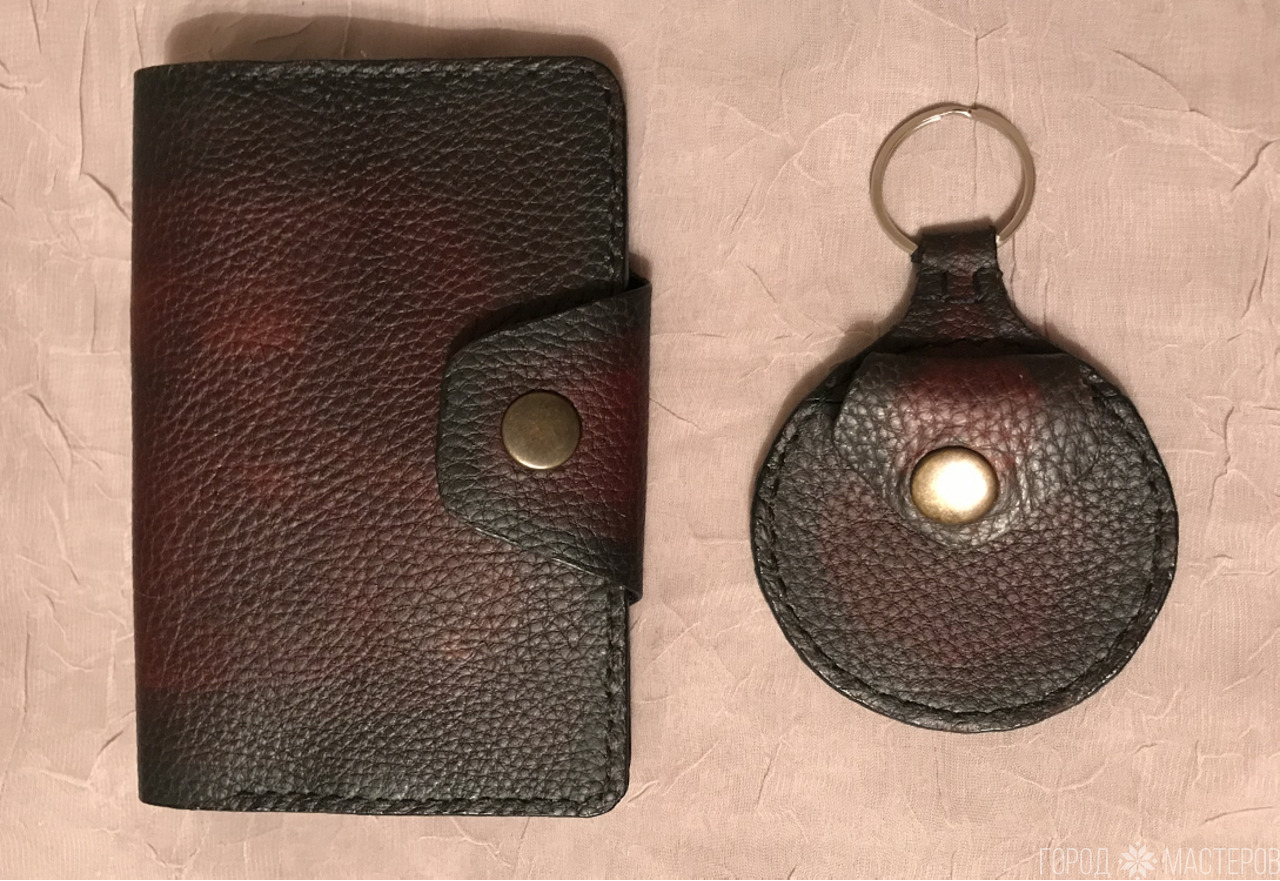 Подарочный набор: обложка для паспорта и брелок-монетница ручной работы ※ Бобруйск