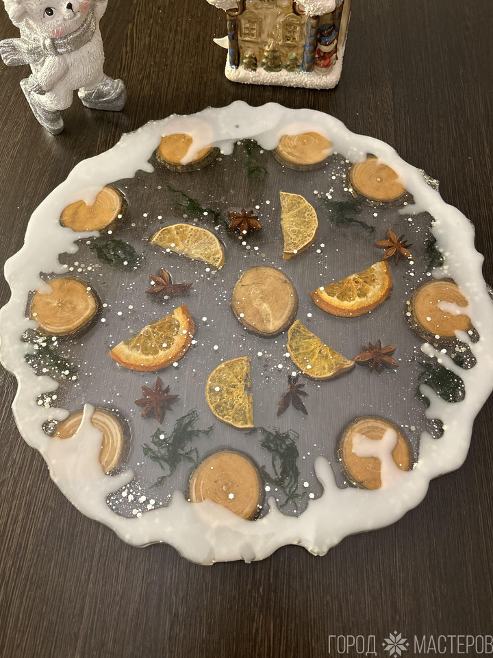 Поднос,Борд для подачи и сервировки.Прекрасен для декора ,для холодных закусок,фруктов и десертов.Ручная работа.Капли словно живые приедет к Вам в упаковке с открыткой.Вам останется лишь только подарить.Диаметр 33см
