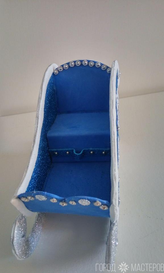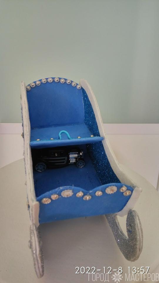 Сани Новогодние. Судушка в санях (сундучок с сюрпризом) Для маленькой игрушки(заколочка, машинка или другой нештячок) Заказ в любом цвете. Подарочная упаковка. (Доставка по РД наложенным платежом белпочтой