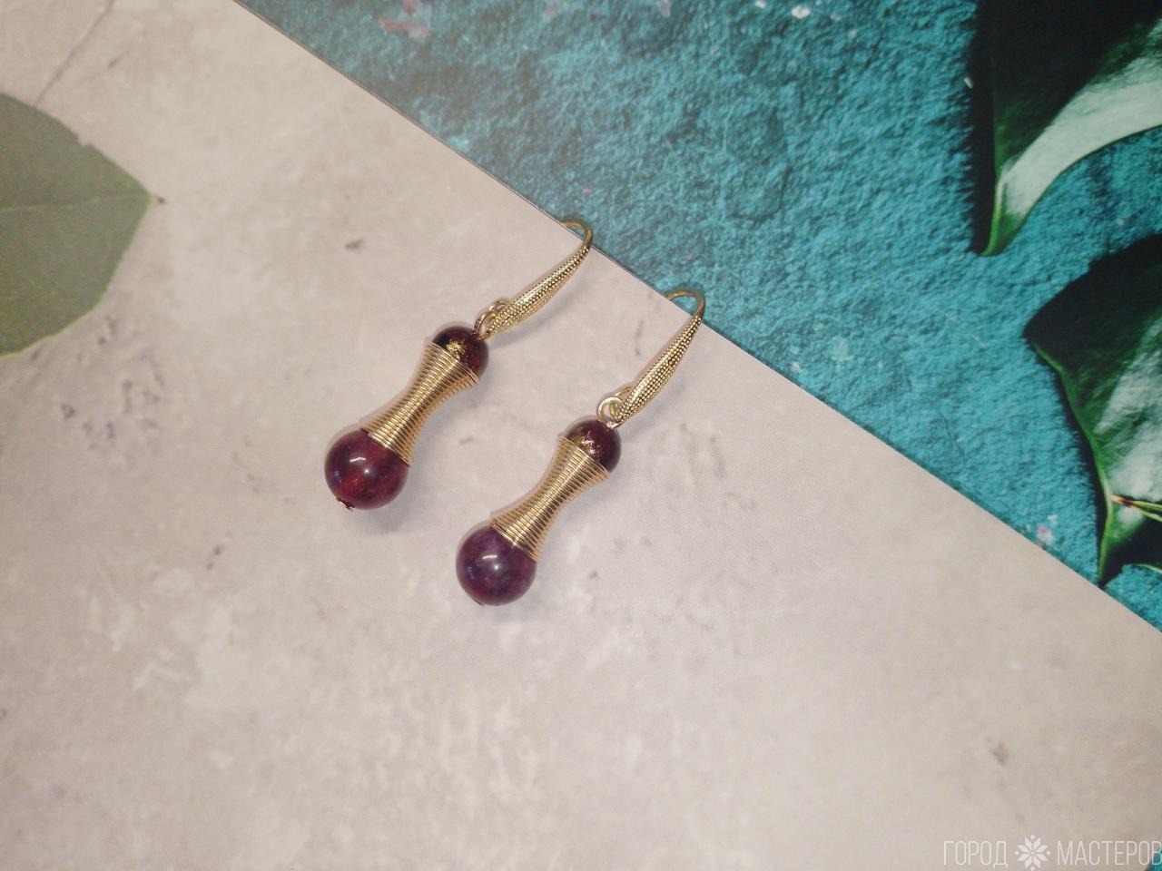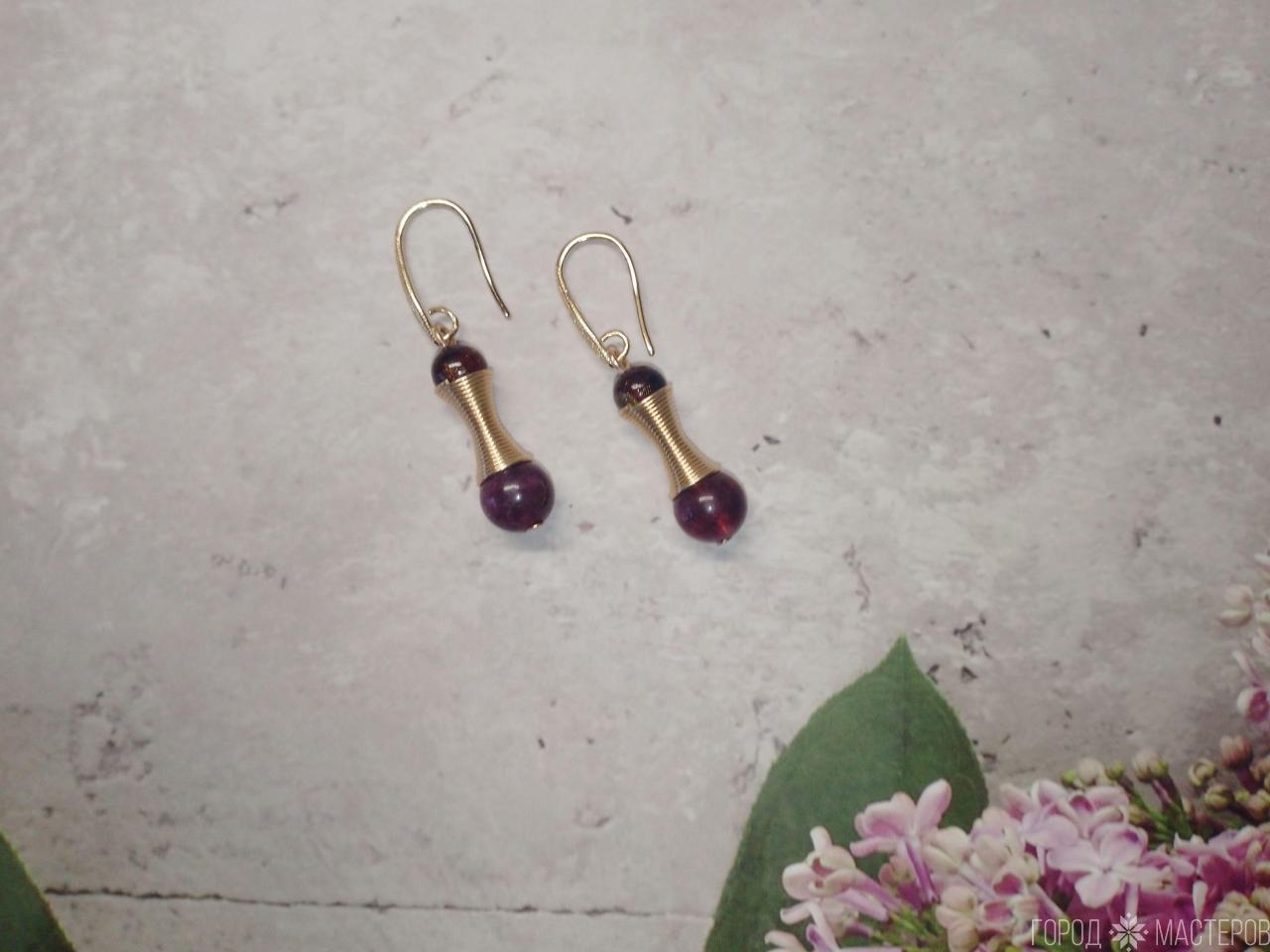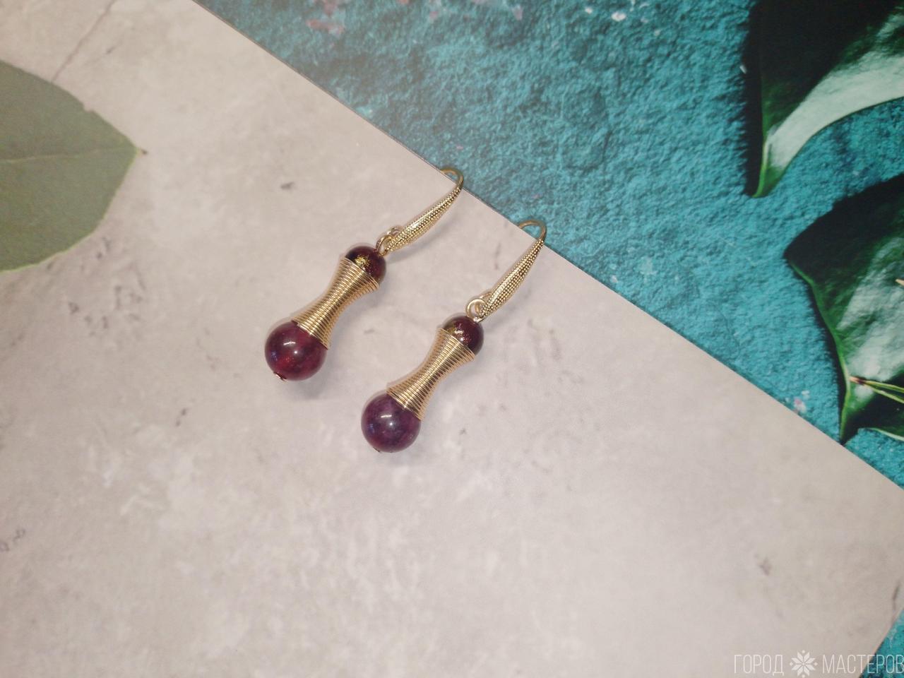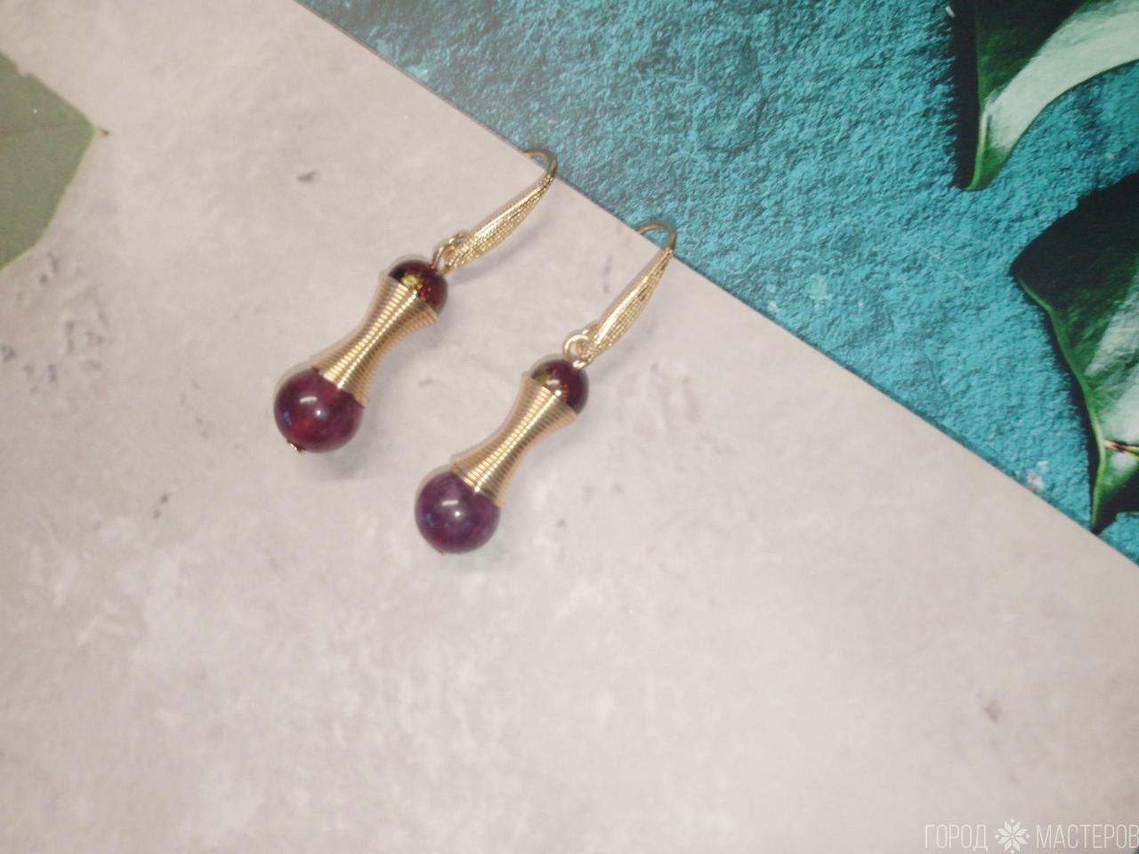 Серьги "гранатовый блеск" с натуральным гранатом ручной работы ※ Могилев