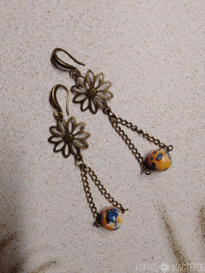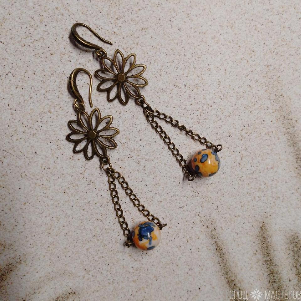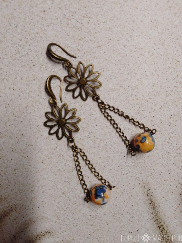 Фурнитура выполнена из бронзы, что не только обеспечивает долговечность, но и добавляет изысканный шарм. Каждая пара серёжек— это не просто украшение, а настоящее произведение искусства, которое подчеркнёт вашу индивидуальность и вкус.
