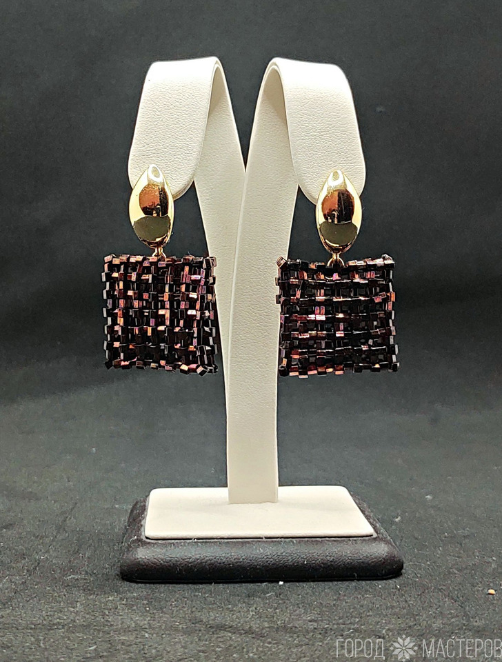 Серьги из японсого, цилиндрического бисера с отличной фурнитурой, покрытой родием. Легкие