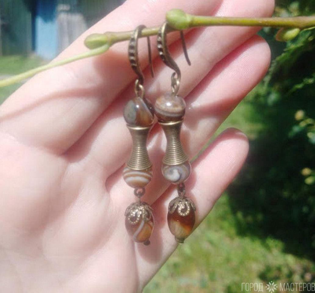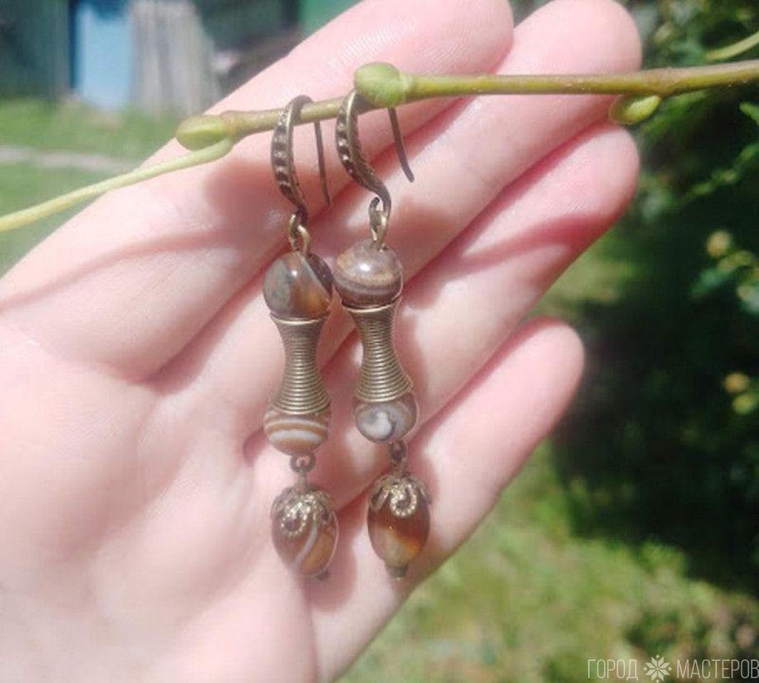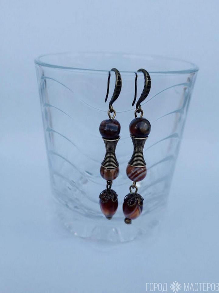Длина серег - 6,5 см, что делает их идеальным аксессуаром для любого наряда. Бронзовая фурнитура и швензы дополняют общий стильный вид.