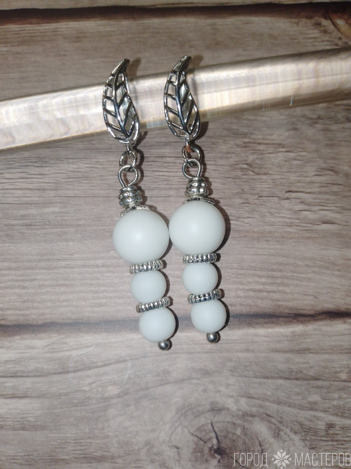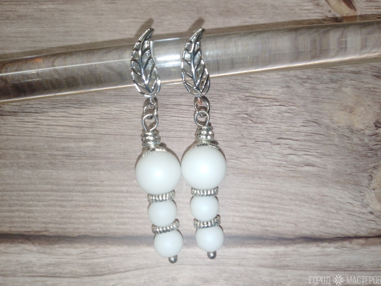 1) Серьги "Белоснежная нежность" с натуральным агатом 20