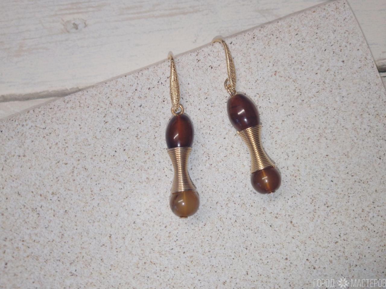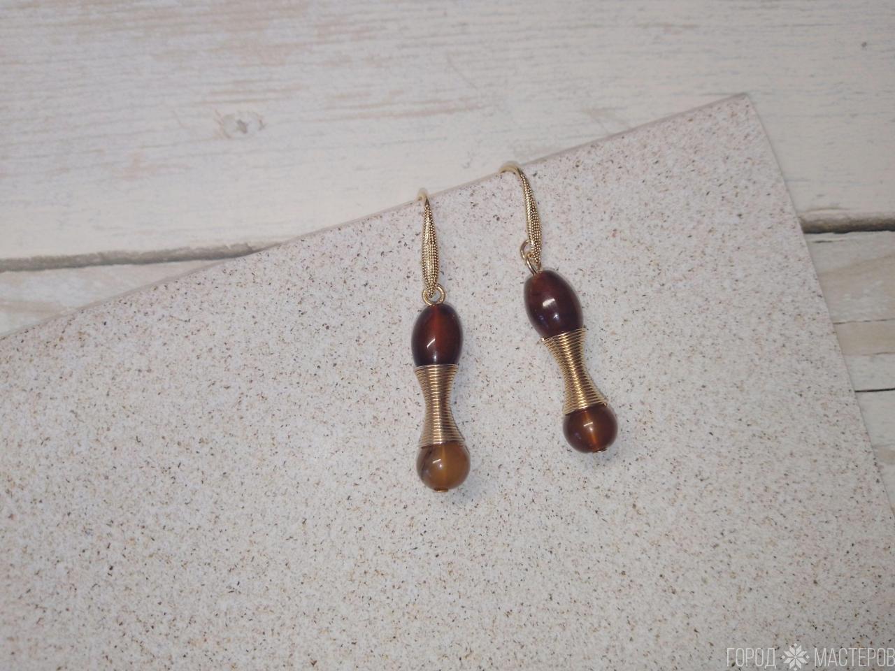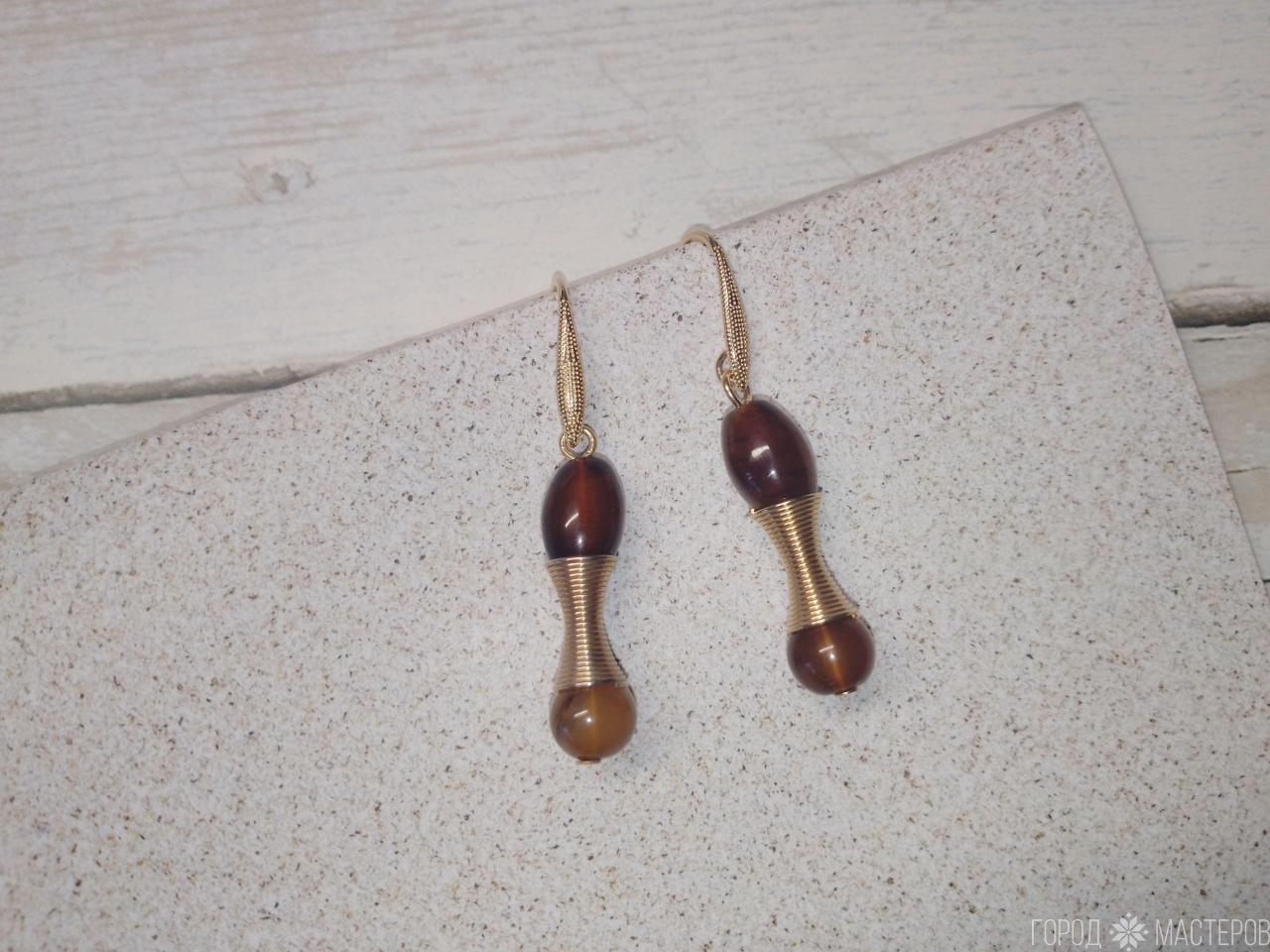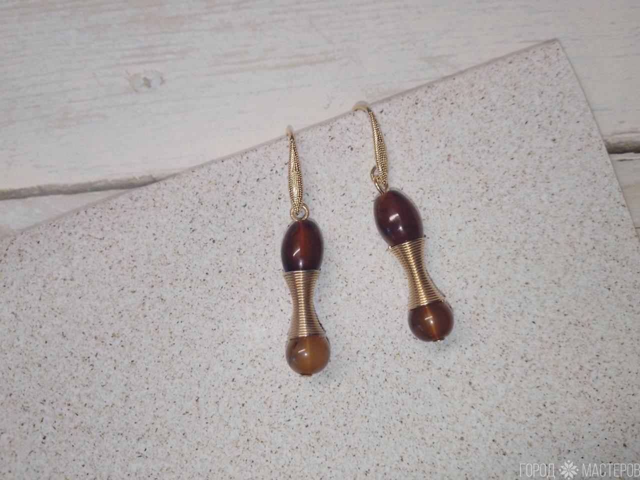 Серьги с натуральным тигровым глазом ШАРМ ручной работы ※ Могилев